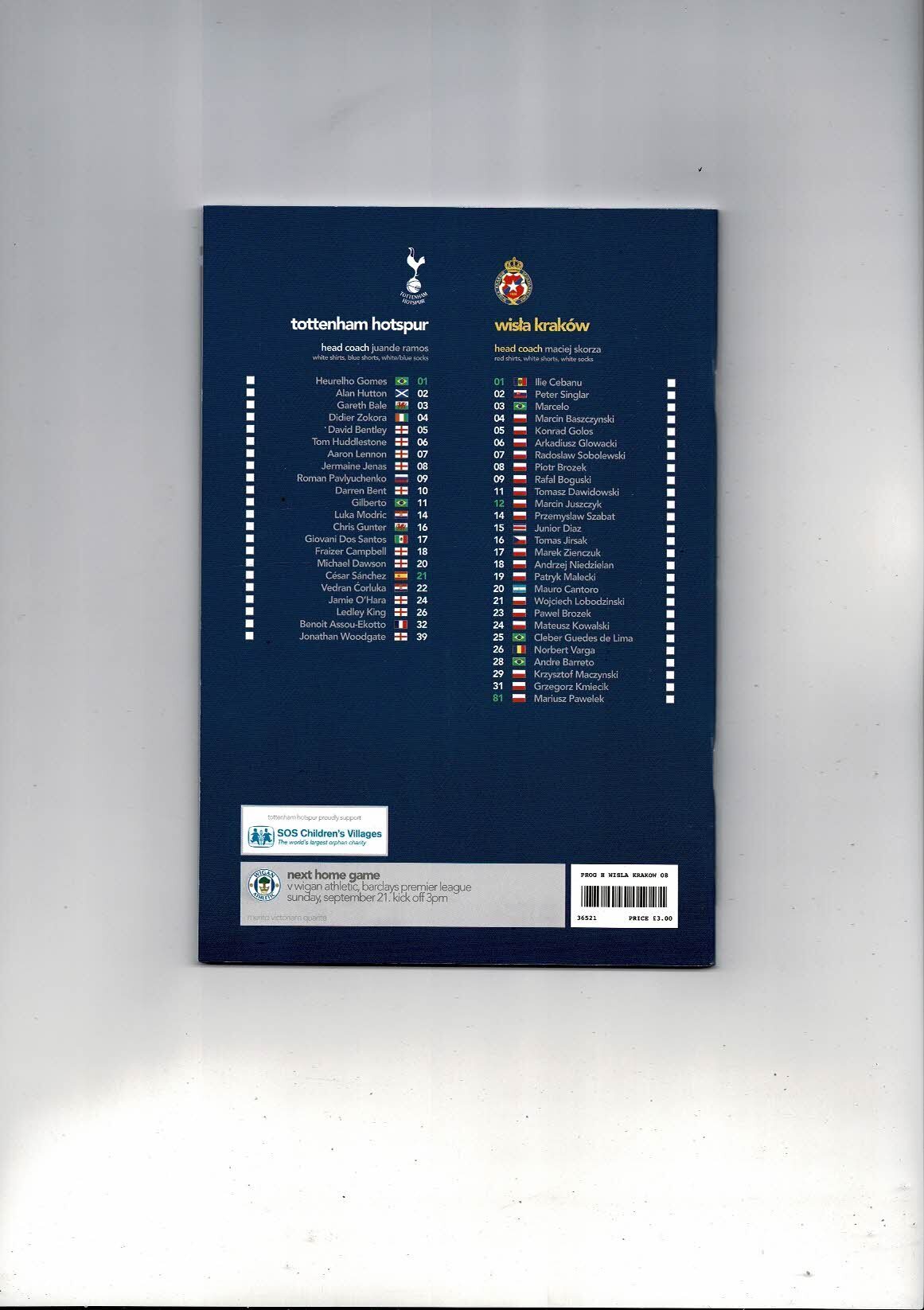 Tottenham v Wisla Krakow UEFA Cup Football Programme 2008/09