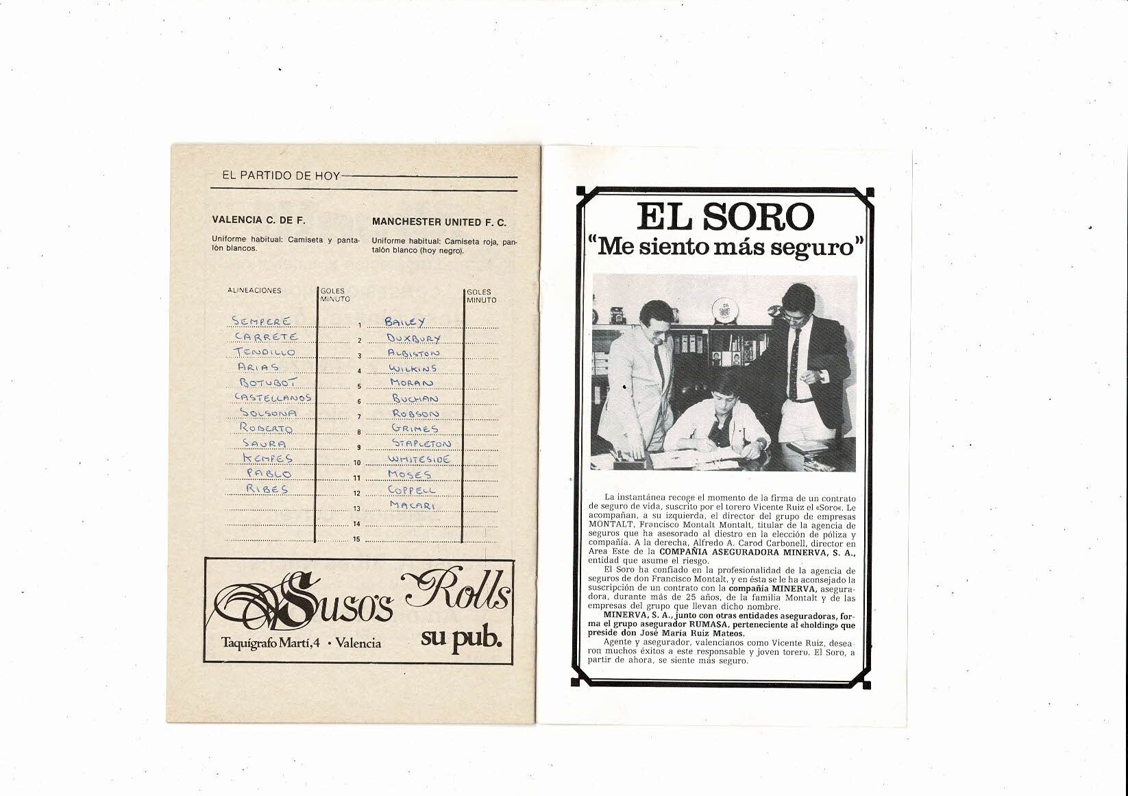 Valencia v Manchester United UEFA Cup Football Programme 1982/83
