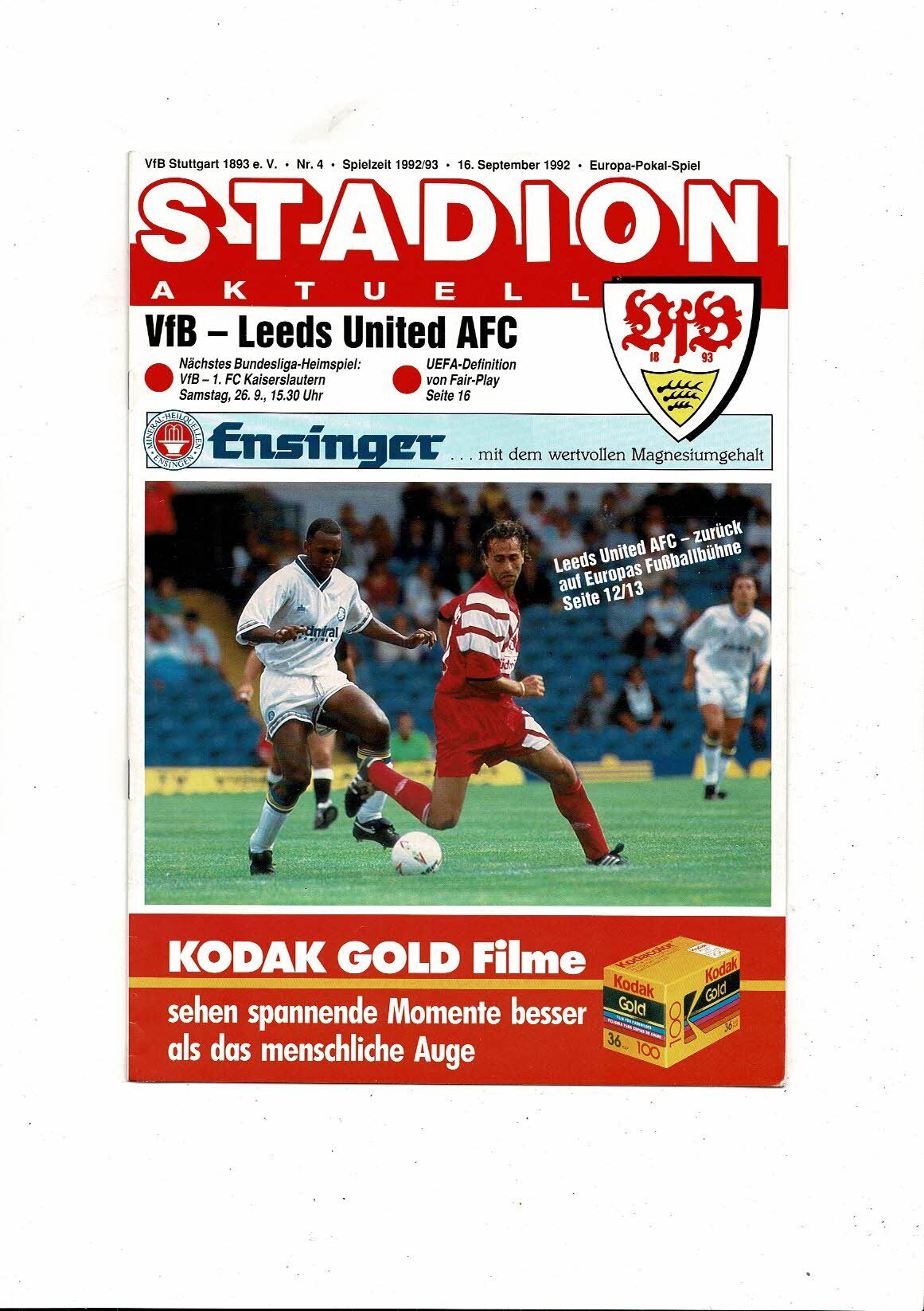 VfB Stuttgart v Leeds United UEFA Cup Football Programme 1992/93