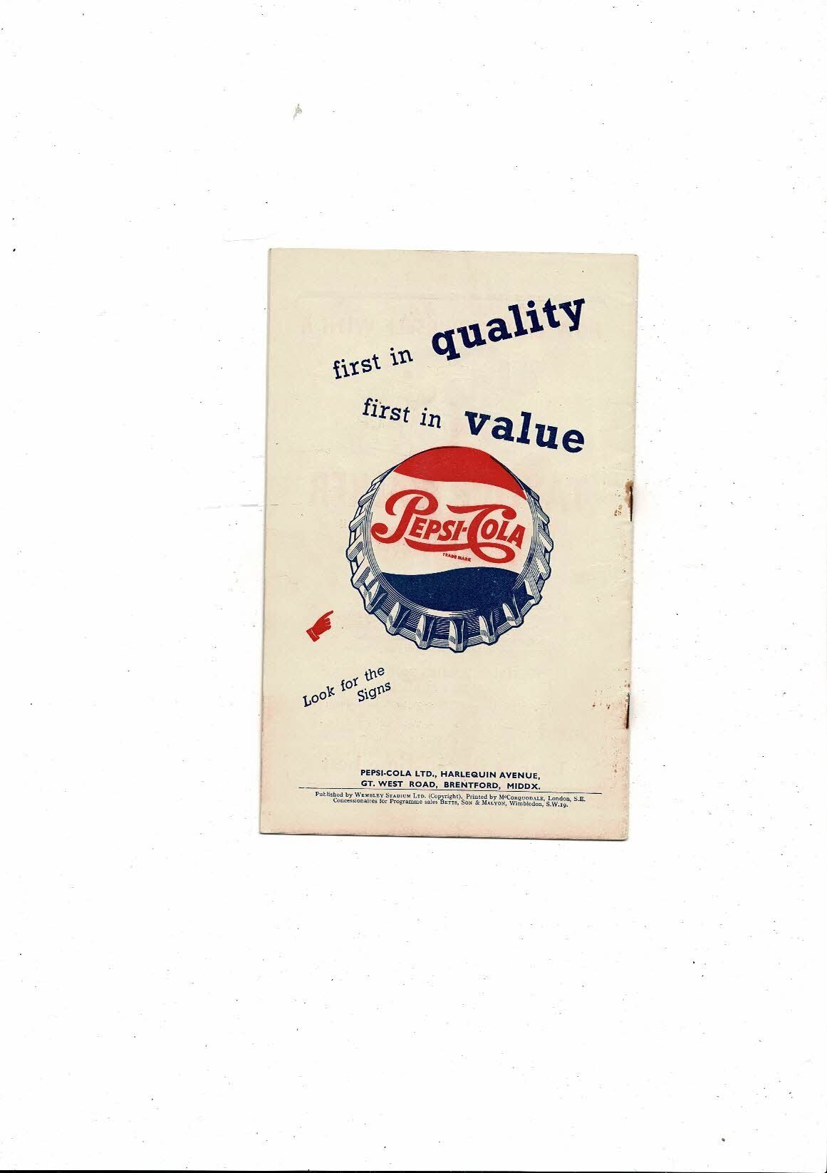 The Original Football Programme is creased with rusty staples, some staining, tiny nic at both ends of spine & one team change in pencil. Please see scans.