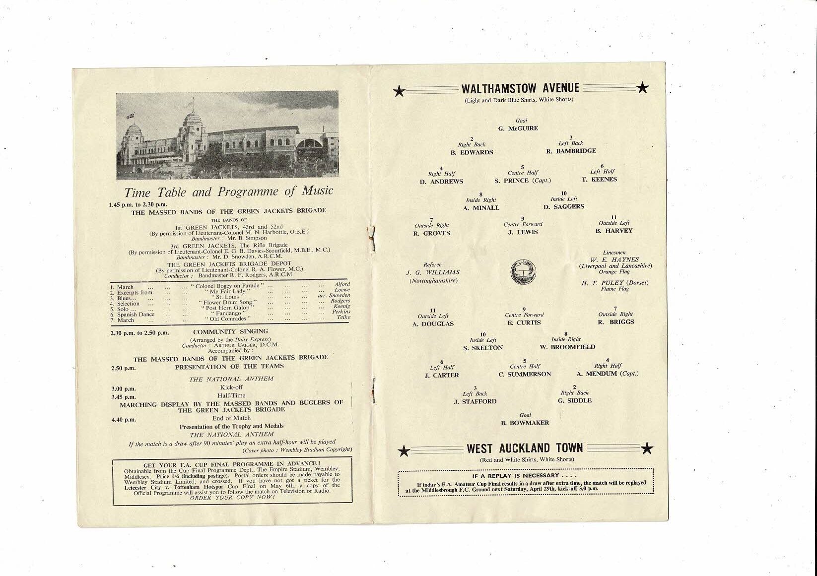 1961 Walthamstow Avenue v West Auckland Town Amateur Cup Final Football Programme