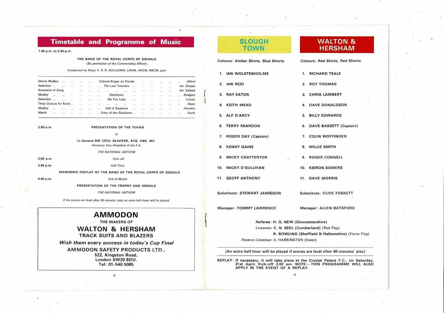 1973 Slough Town v Walton & Hersham Amateur Cup Final Football Programme