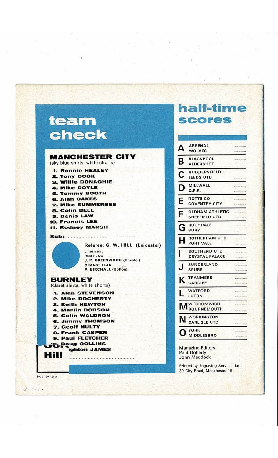 1973 Manchester City v Burnley Charity Shield Football Programme