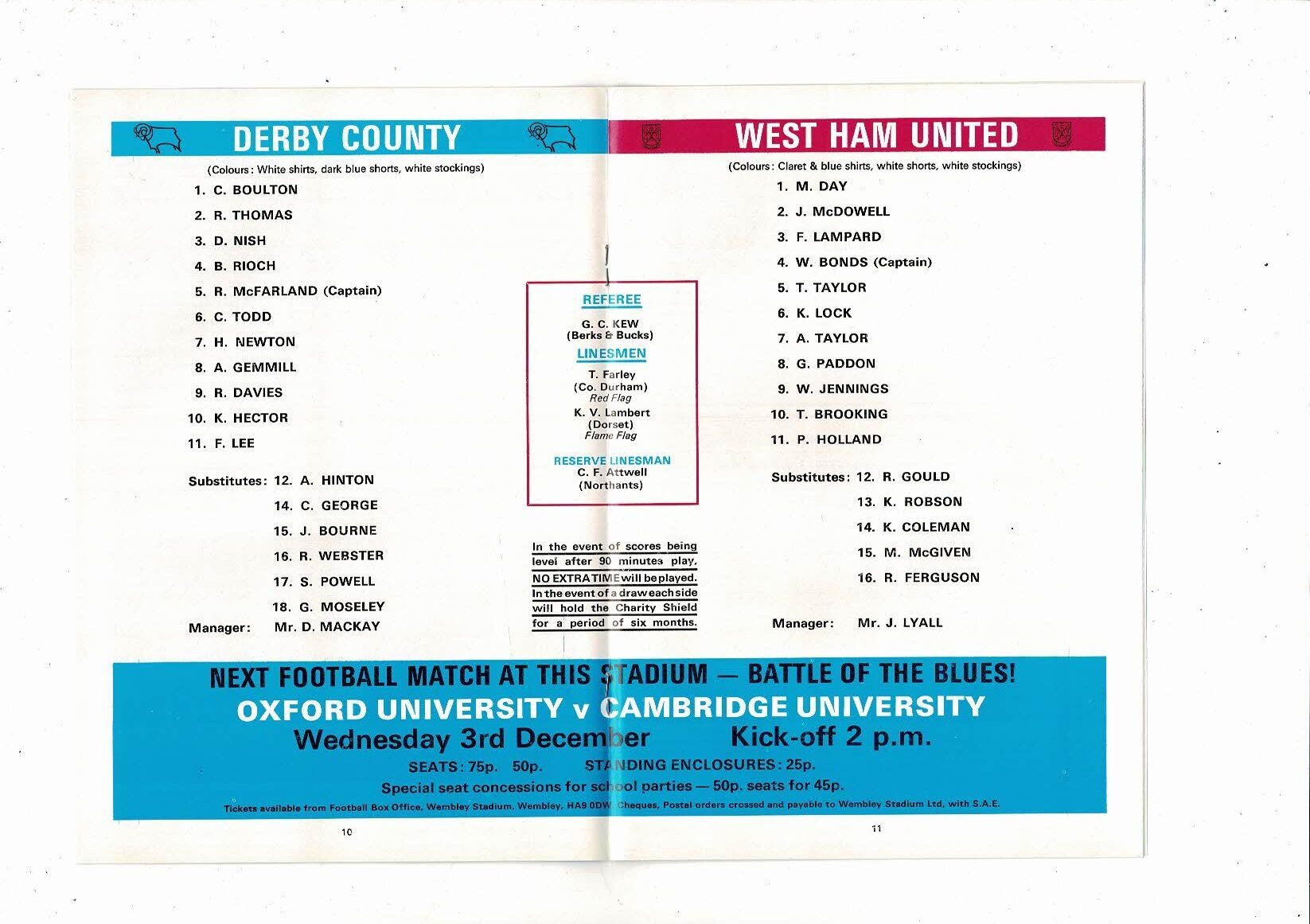 1975 Derby County v West Ham United Charity Shield Football Programme