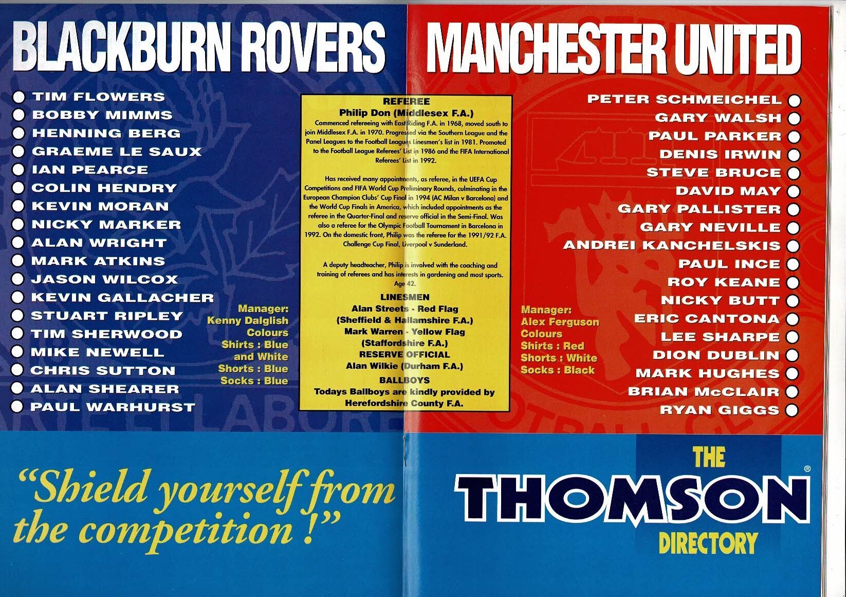1994 Blackburn Rovers v Manchester United Charity Shield Football Programme