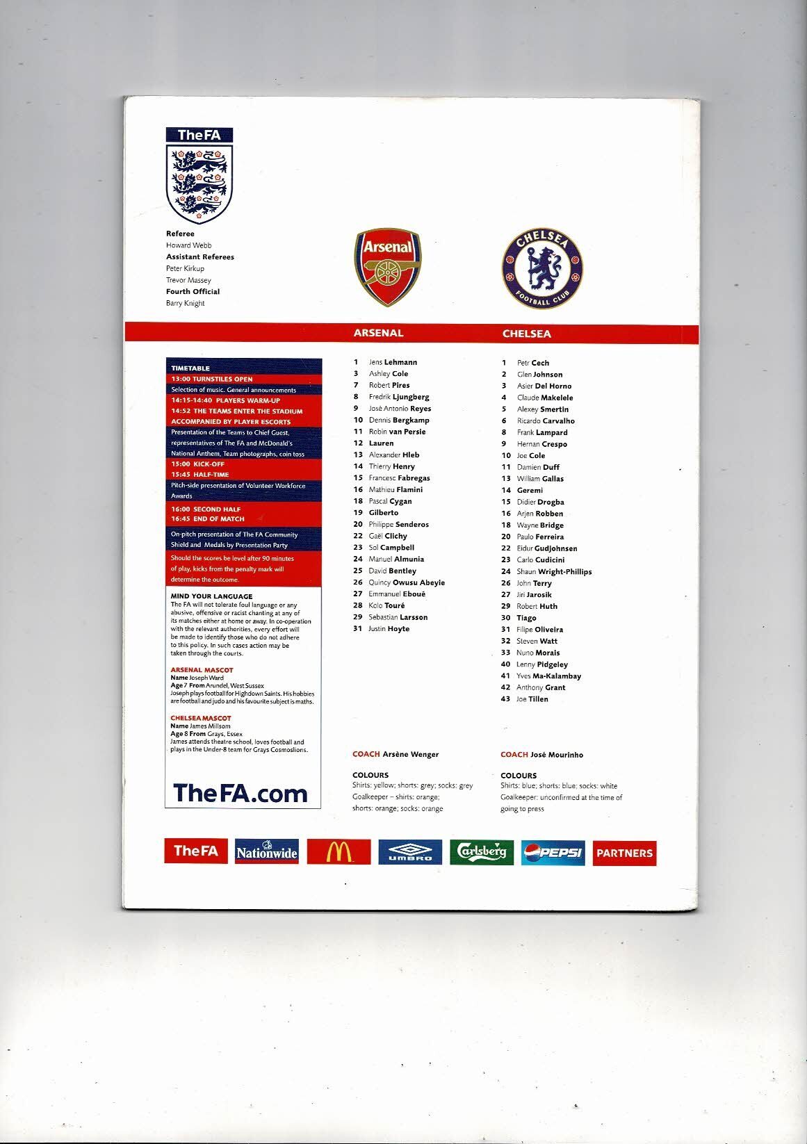 2005 Arsenal v Chelsea Charity Shield Football Programme + Press Cutting
