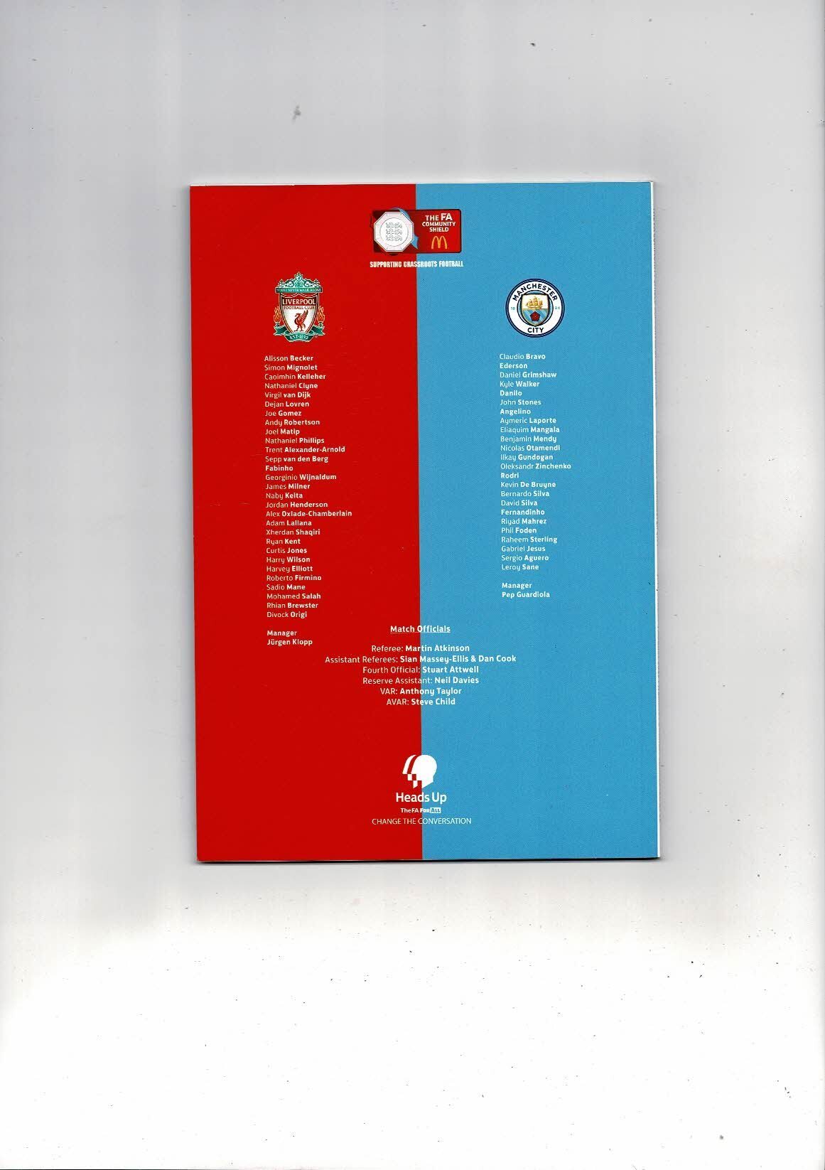 2019 Liverpool v Manchester City Charity Shield Football Programme