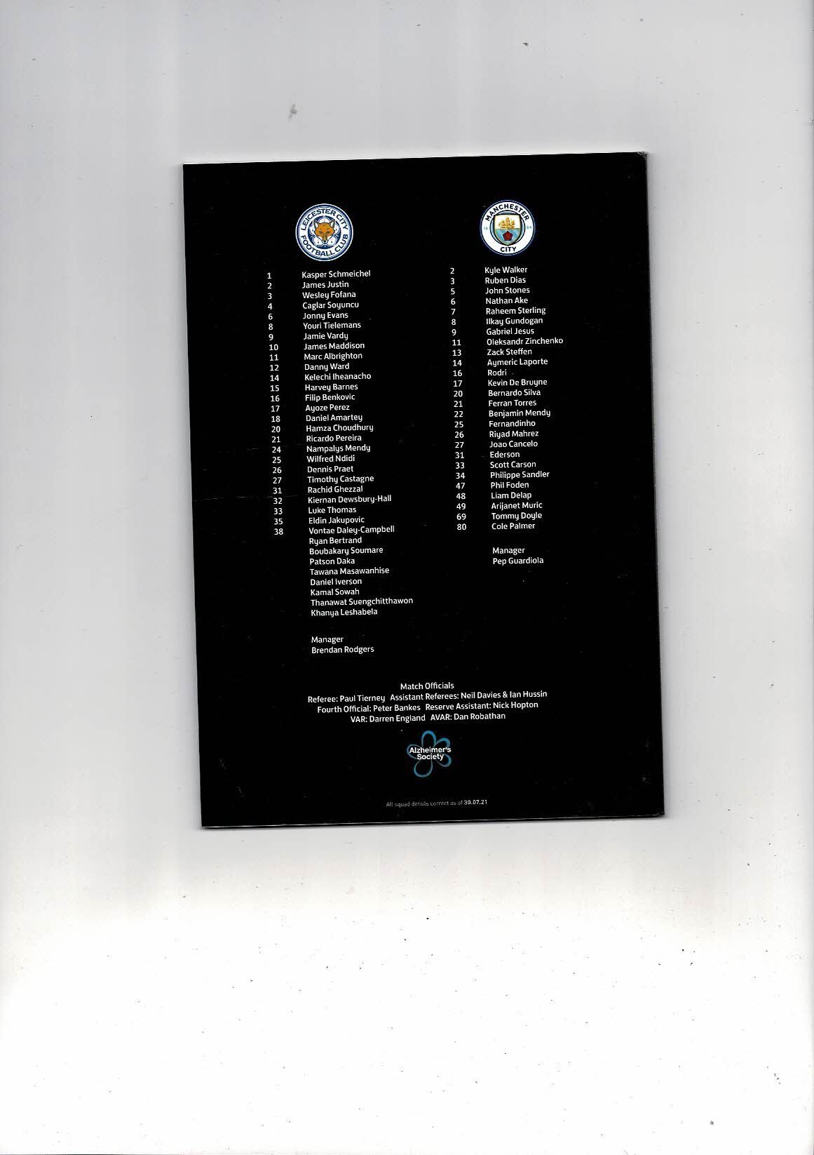 2021 Leicester City v Manchester City Charity Shield Football Programme