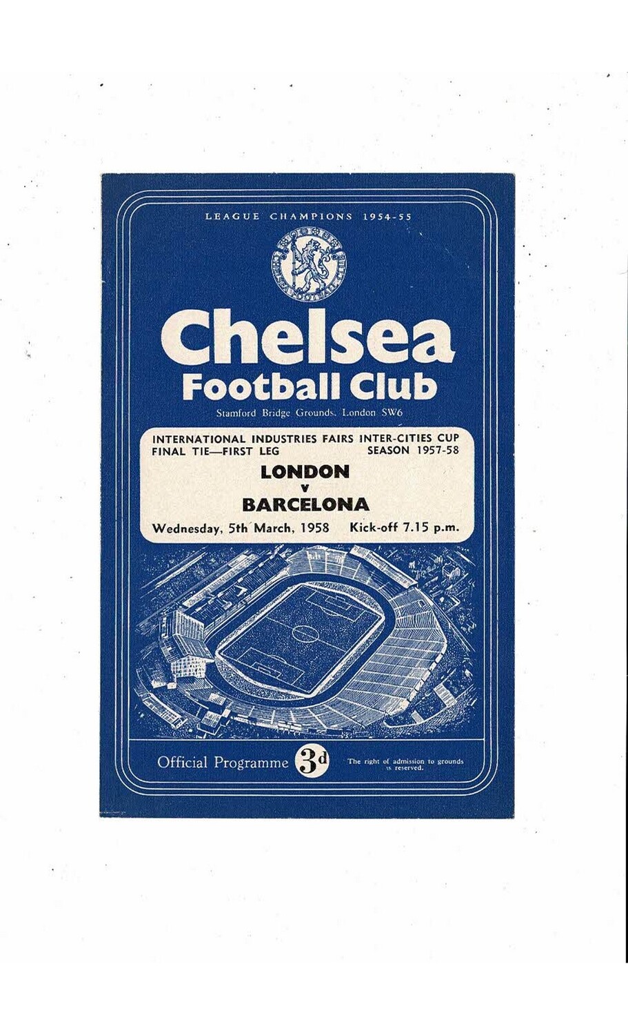 1958 London v Barcelona Inter Cities Fairs Cup Final Football Programme @ Chelsea