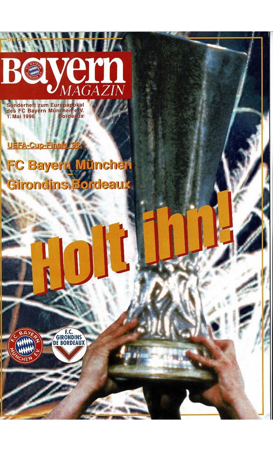 1996 Bayern Munich v Bordeaux UEFA Cup Final Football Programme
