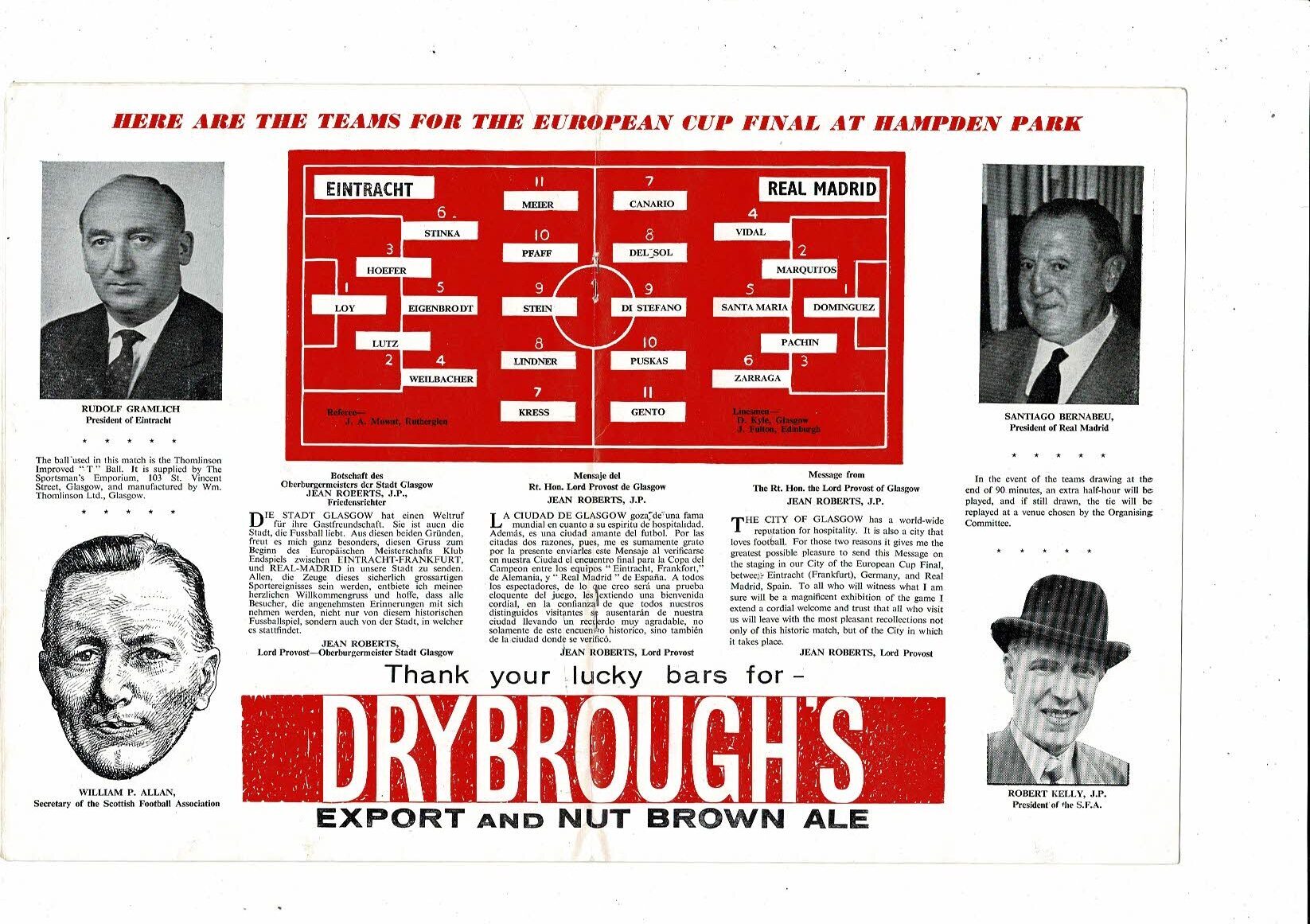 1960 Eintracht Frankfurt v Real Madrid European Cup Final Football Programme