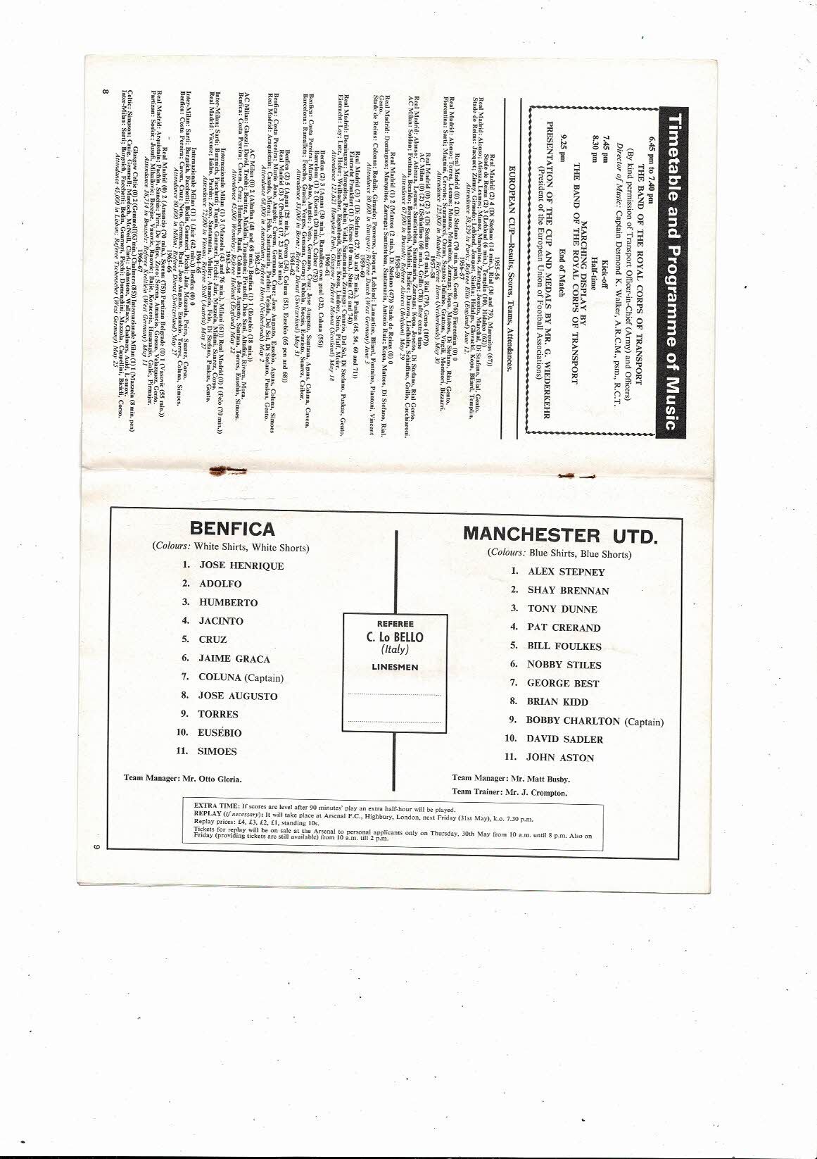 1968 Benfica v Manchester United European Cup Final Original Football Programme