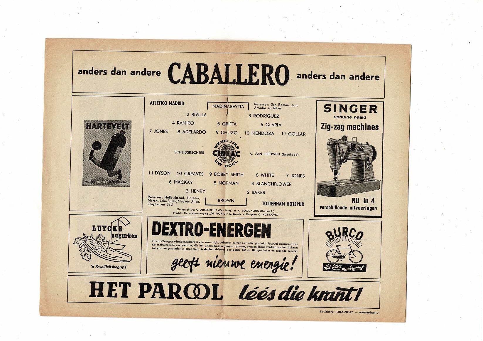 1963 Atletico Madrid v Tottenham Hotspur European Cup Winners Cup Final Programme