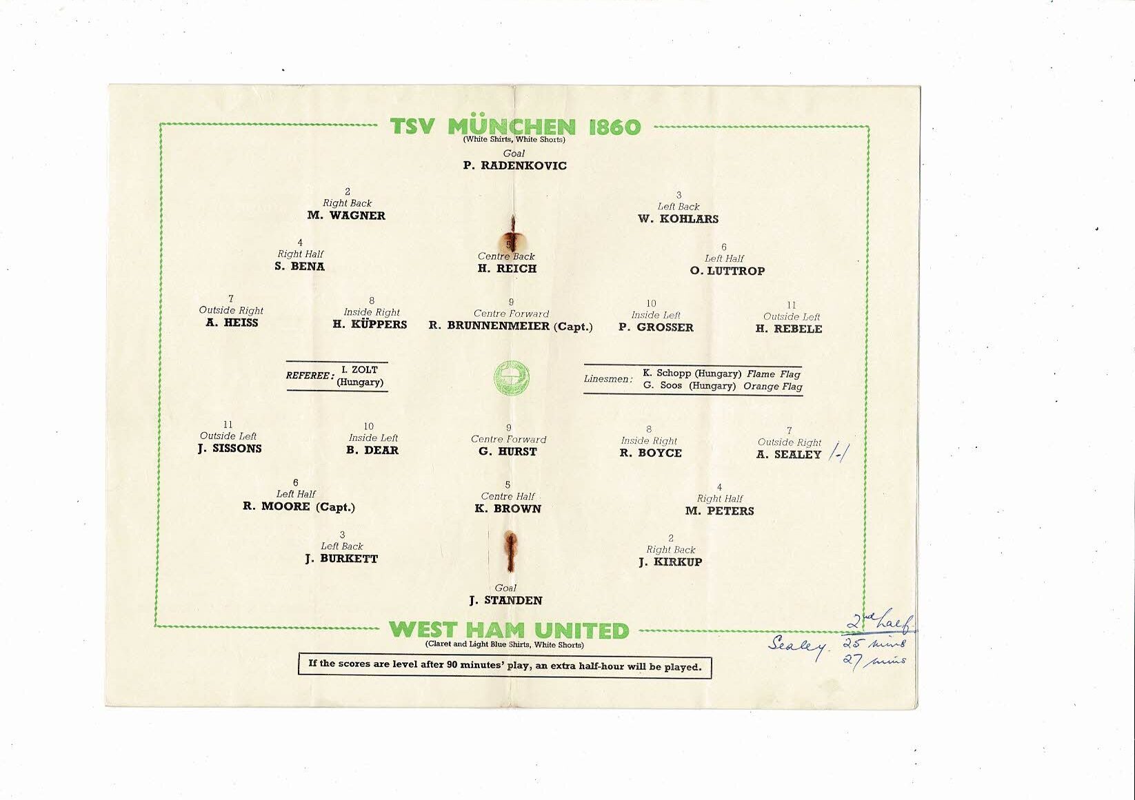 1965 TSV Munchen 1860 v West Ham United European Cup Winners Cup Final Football Programme