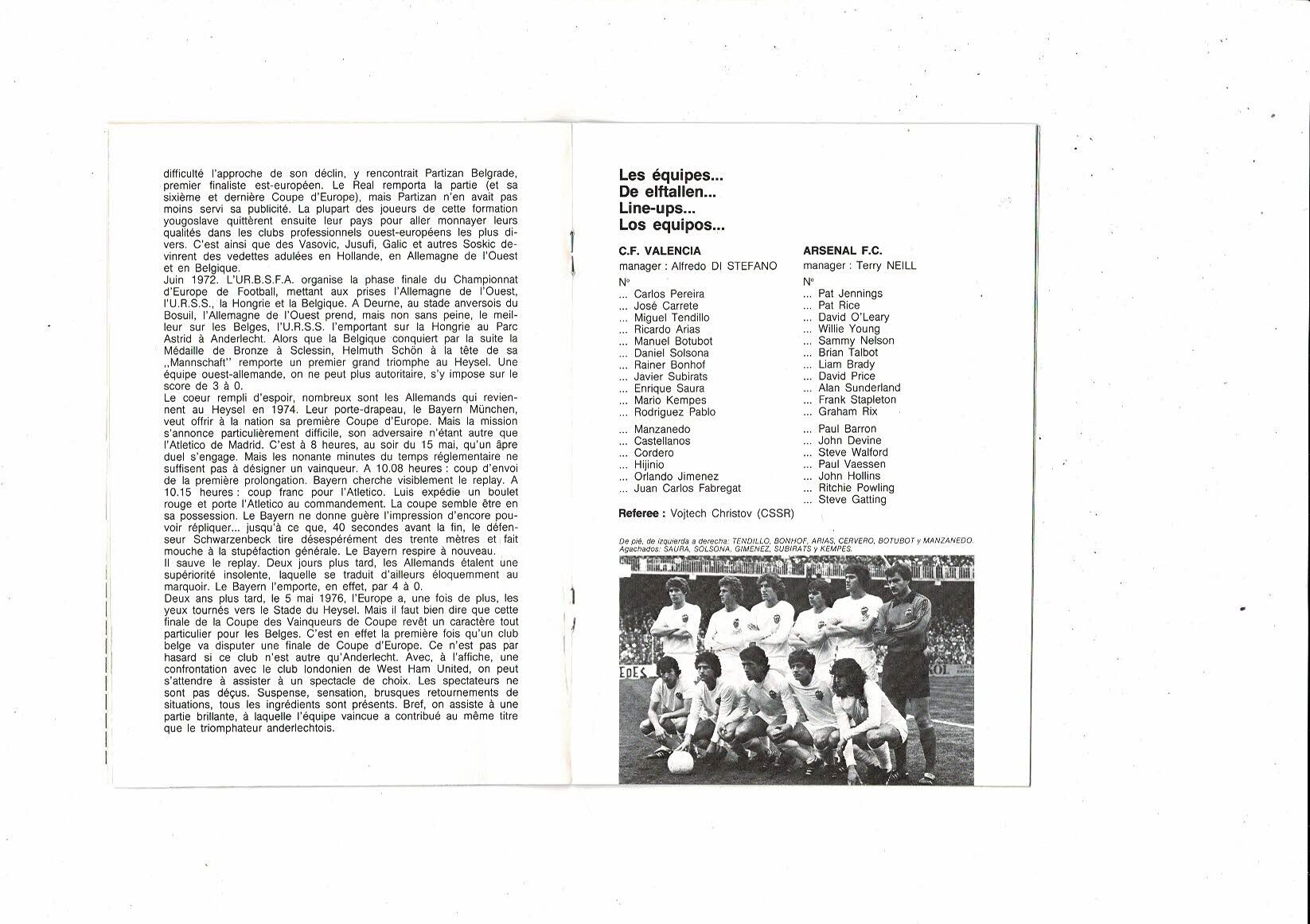 1980 Arsenal v Valencia European Cup Winners Cup Final Programme
