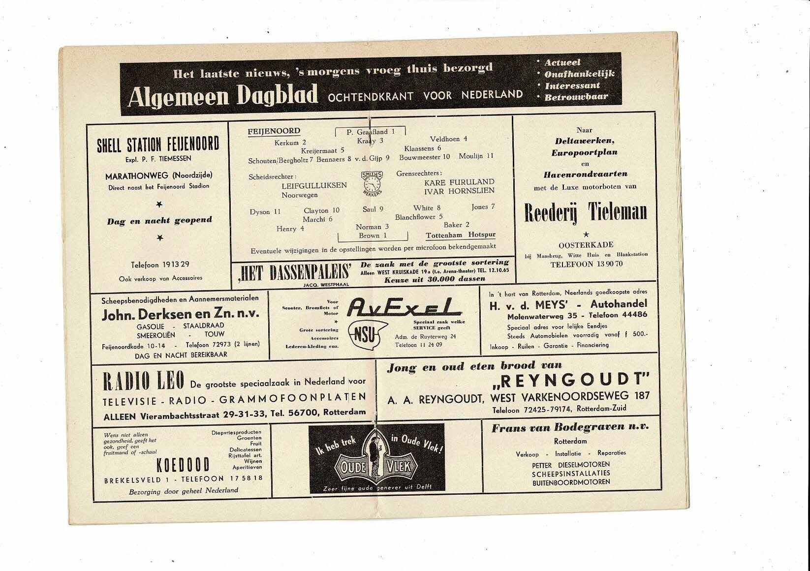 Feyenoord v Tottenham Hotspur ECWC Stadion Nieuws Edition 1961/62