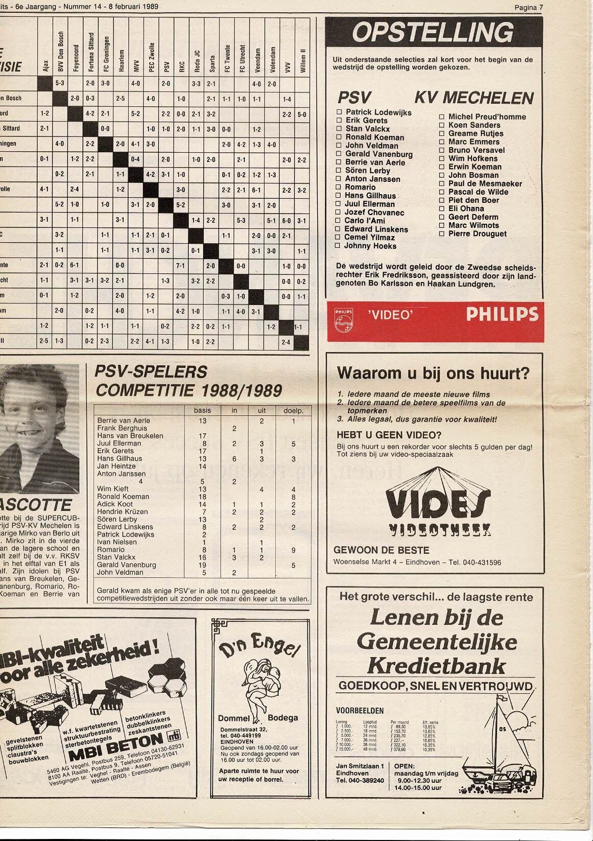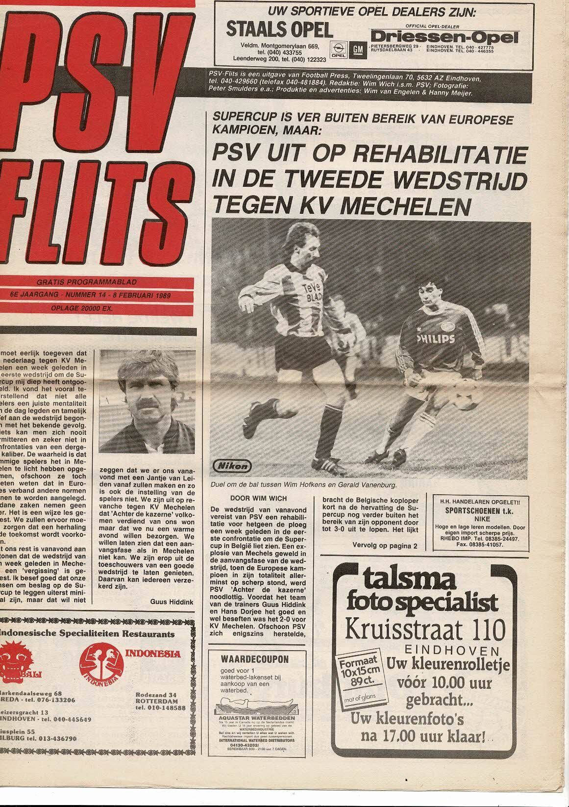 PSV Eindhoven v KV Mechelen European Super Cup Football Programme 1988/89