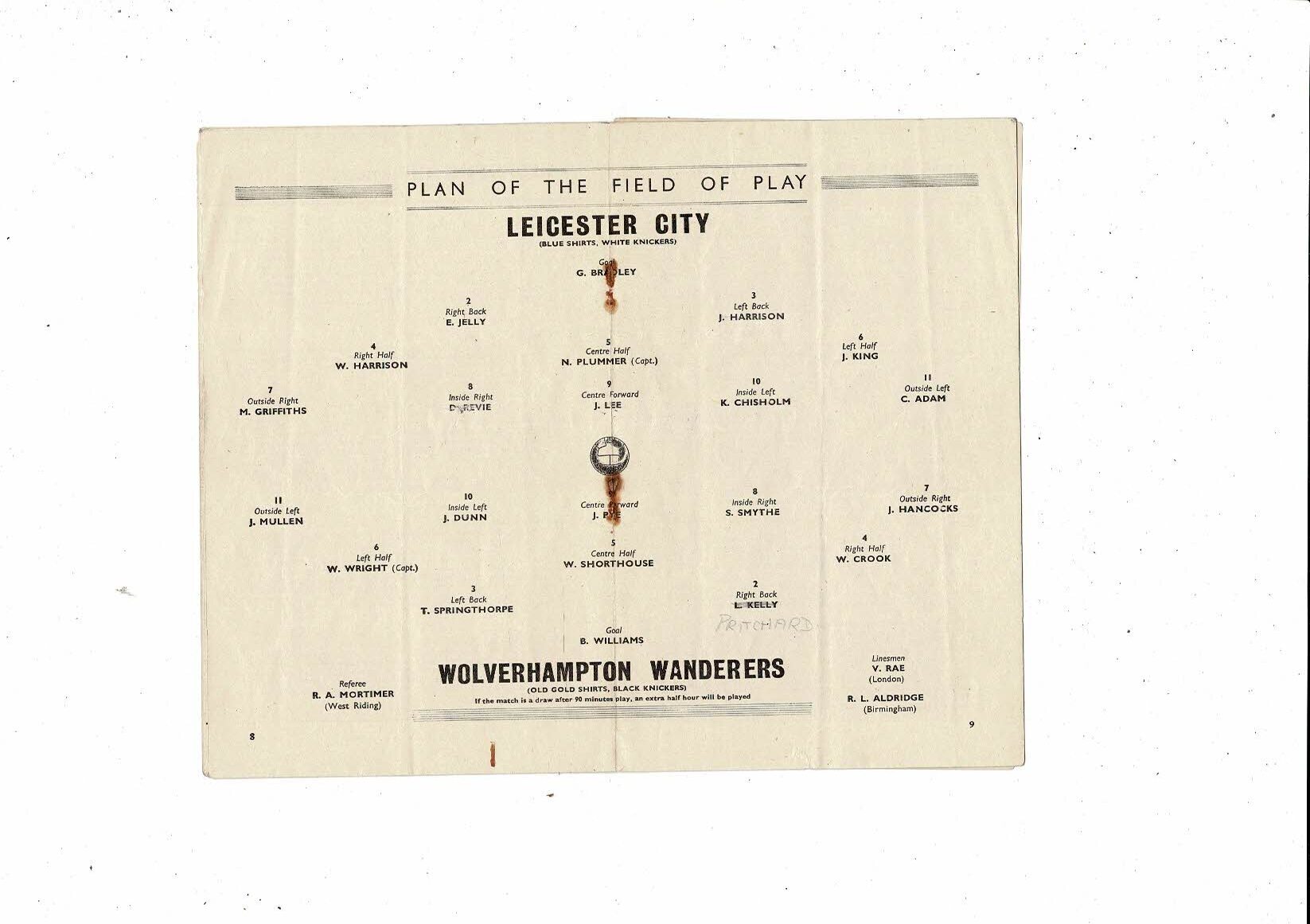 1949 Leicester City v Wolves FA Cup Final Football Programme
