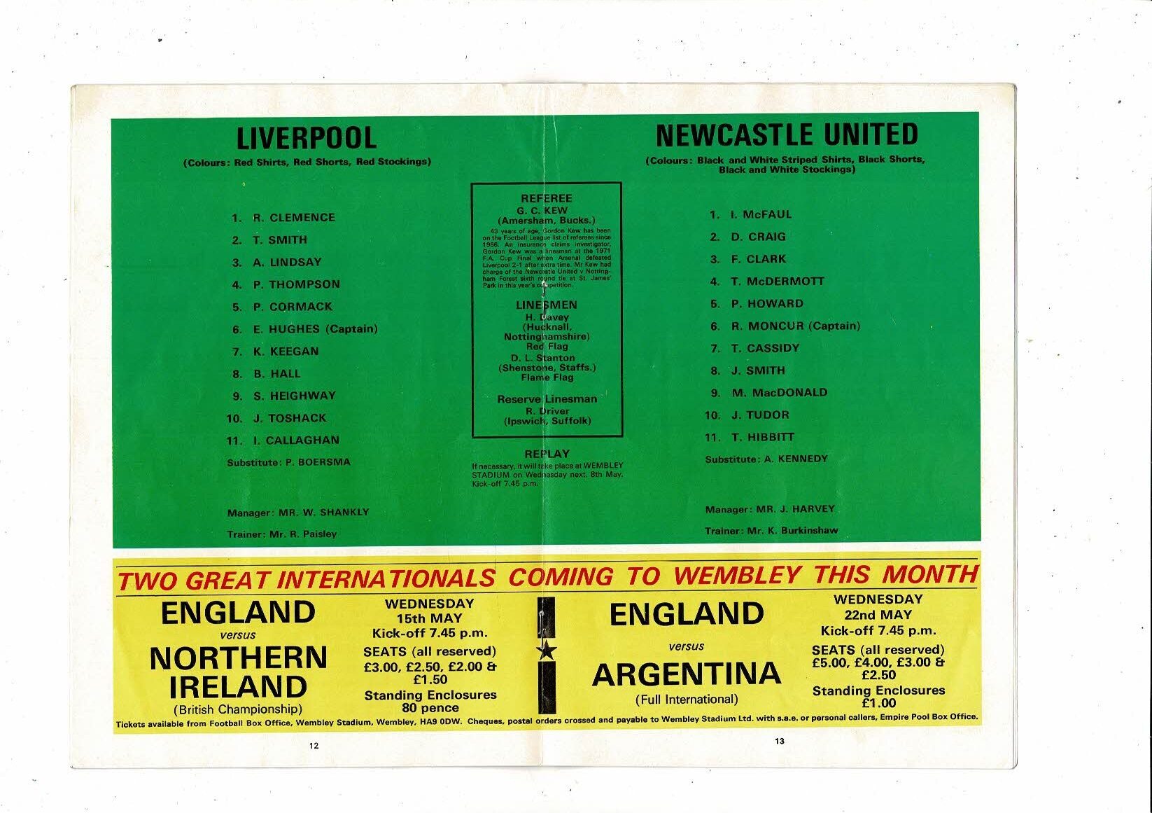 1974 Liverpool v Newcastle United FA Cup Final Football Programme