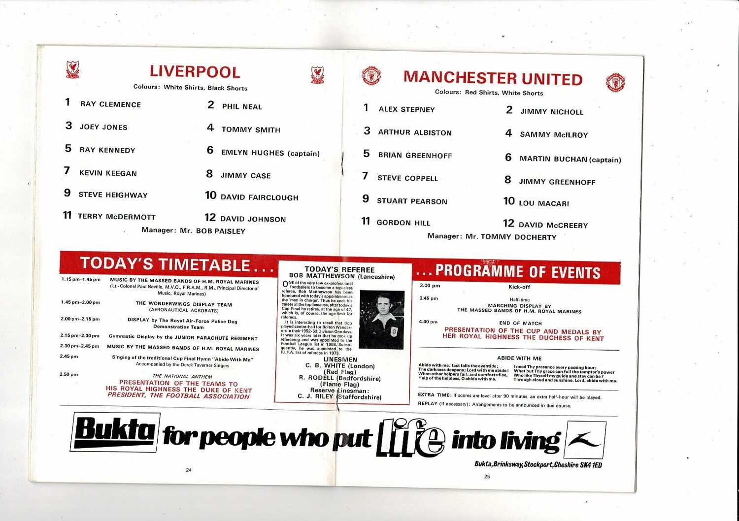 1977 Liverpool v Manchester United FA Cup Final Football Programme