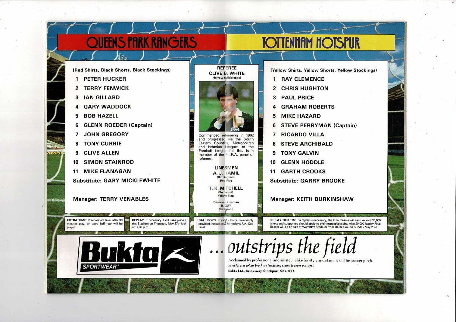 1982 Queens Park Rangers v Tottenham Hotspur FA Cup Final Football Programme