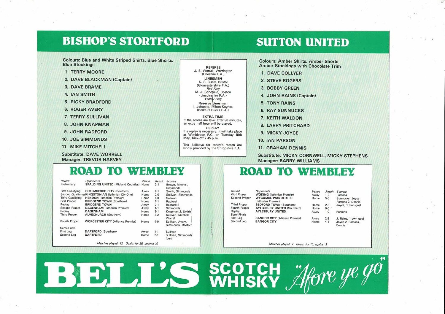 1981 Bishops Stortford v Sutton United FA Trophy Final Football Programme