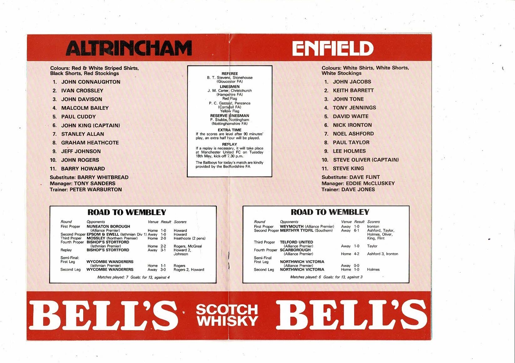 1982 Altrincham v Enfield FA Trophy Final Football Programme