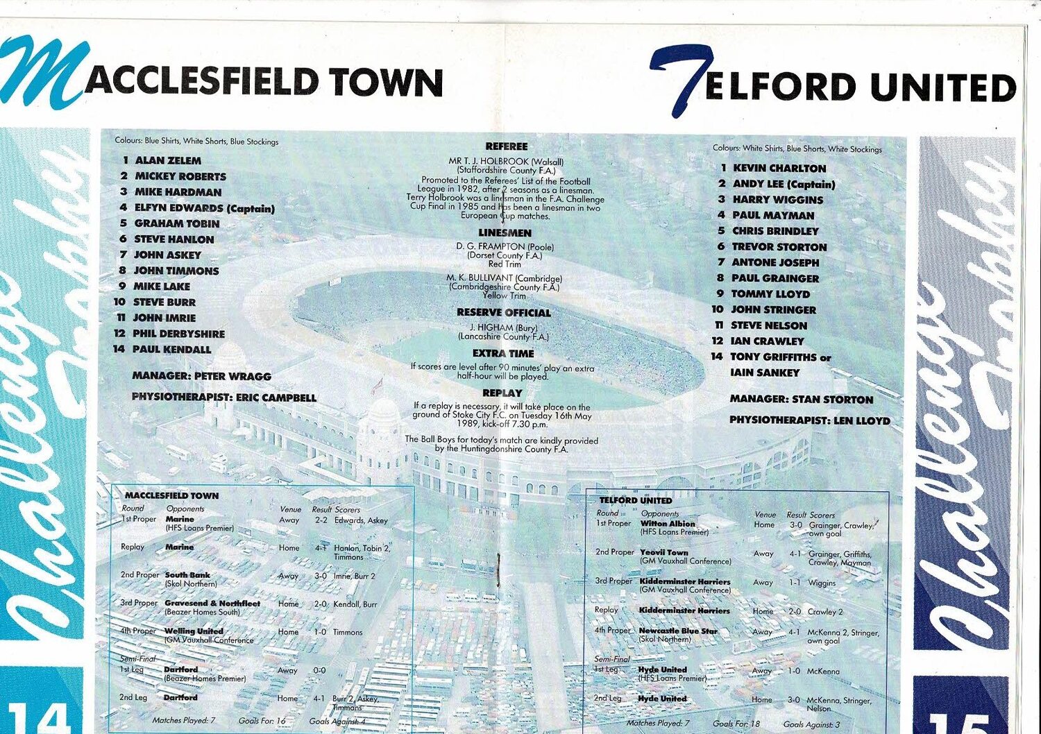 1989 Macclesfield Town v Telford United FA Trophy Final Football Programme