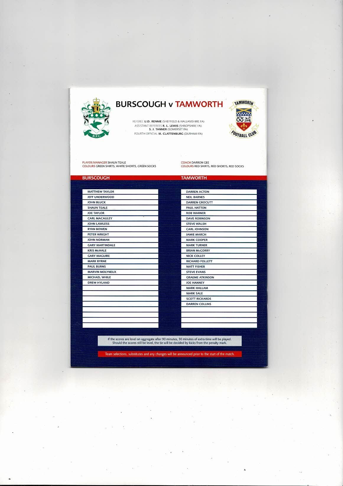 2003 Burscough v Tamworth FA Trophy Final Football Programme