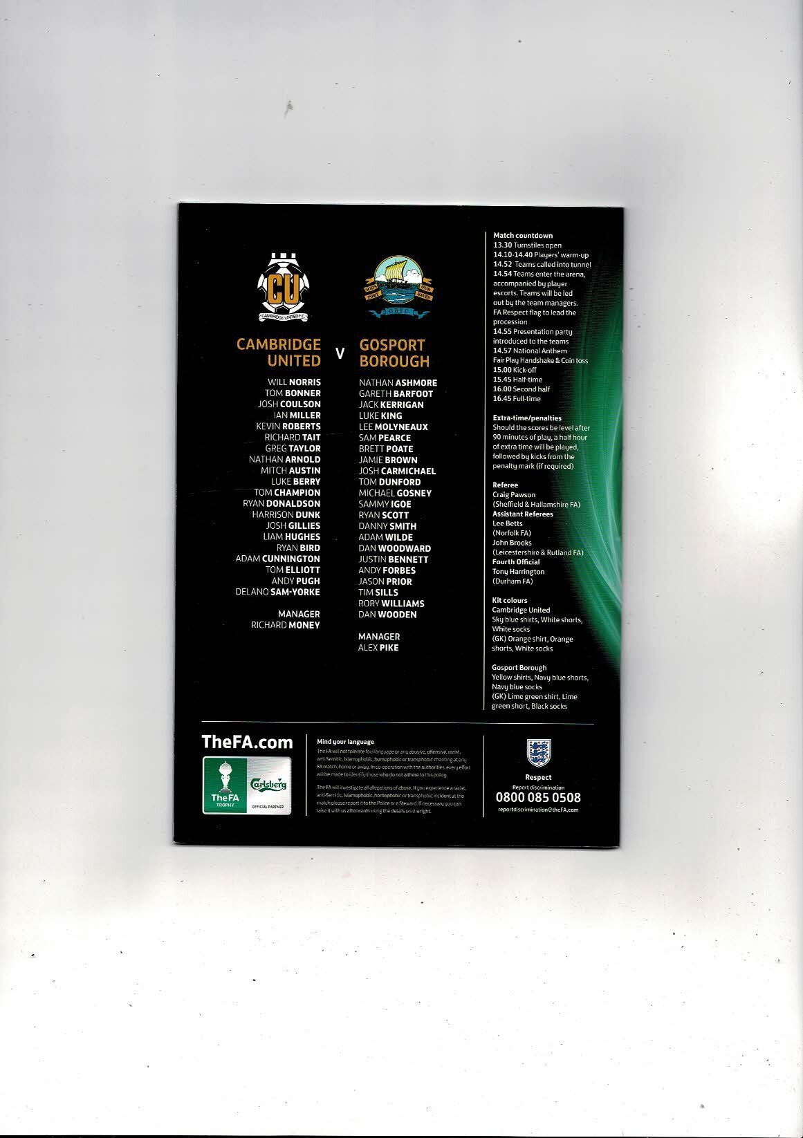 2014 Cambridge United v Gosport Borough FA Trophy Final Football Programme