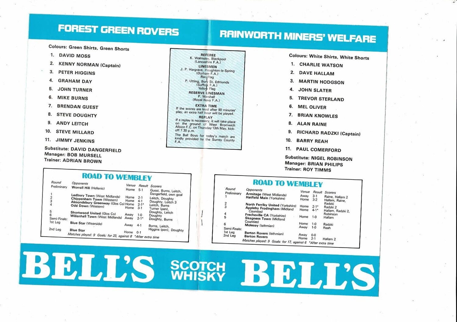 1982 Forest Green Rovers v Rainworth MW FA Vase Final Football Programme