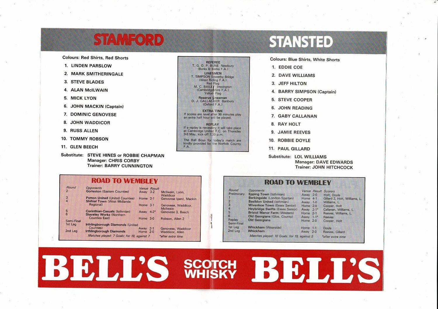 1984 Stamford v Stansted FA Vase Final Football Programme