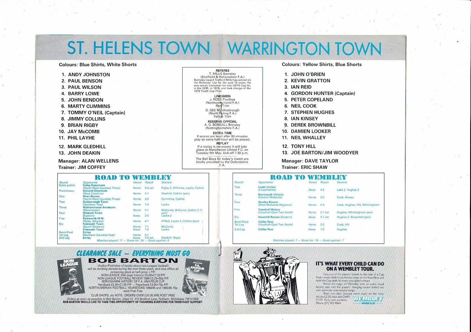 1987 St Helens Town v Warrington Town FA Vase Final Football Programme