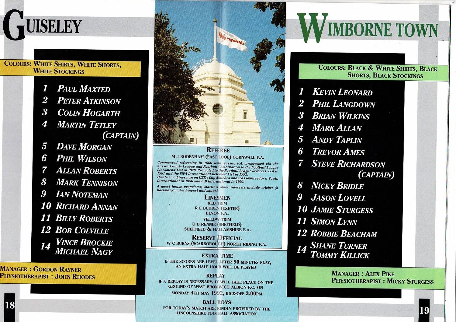 1992 Guiseley v Wimborne Town FA Vase Final Football Programme