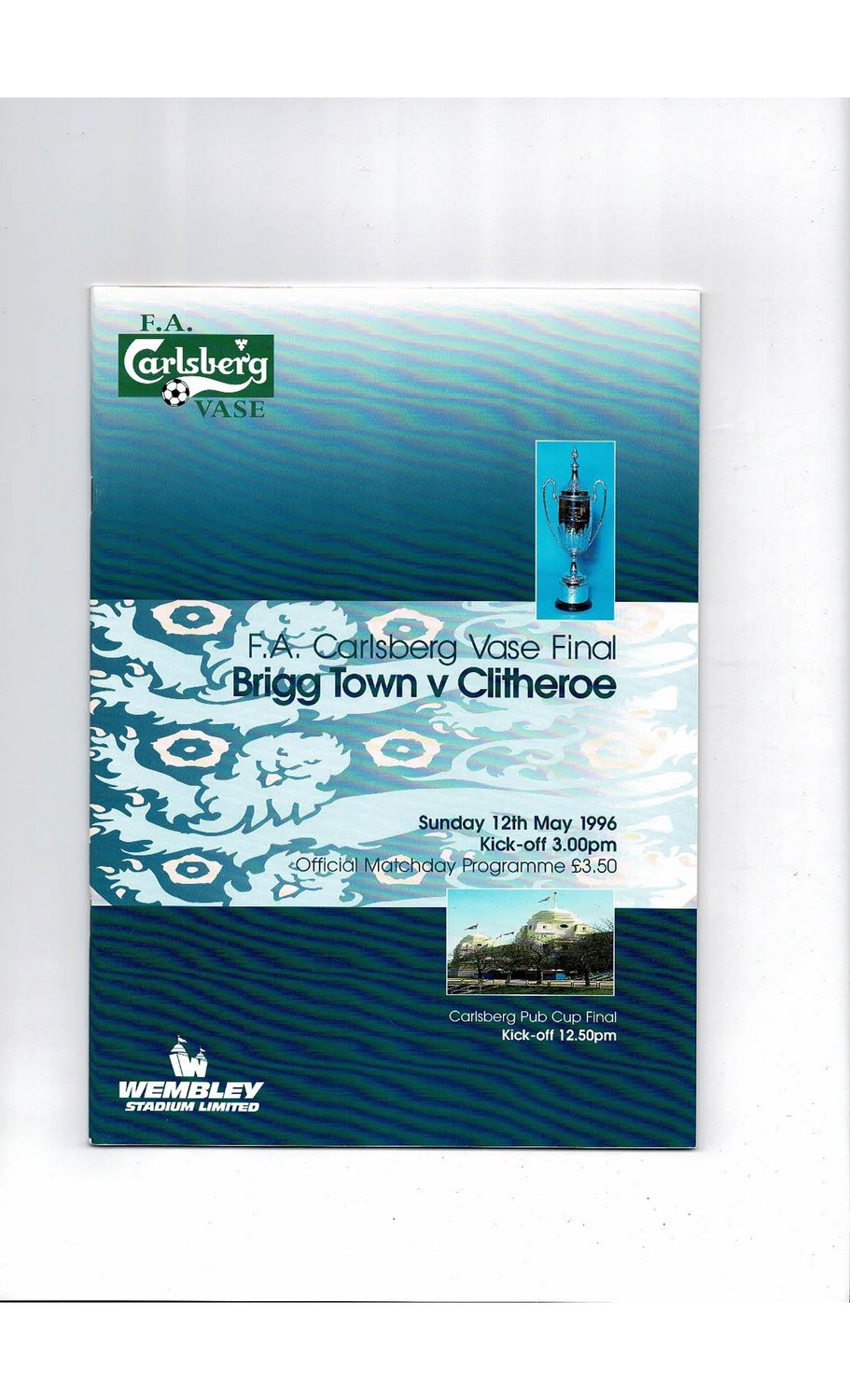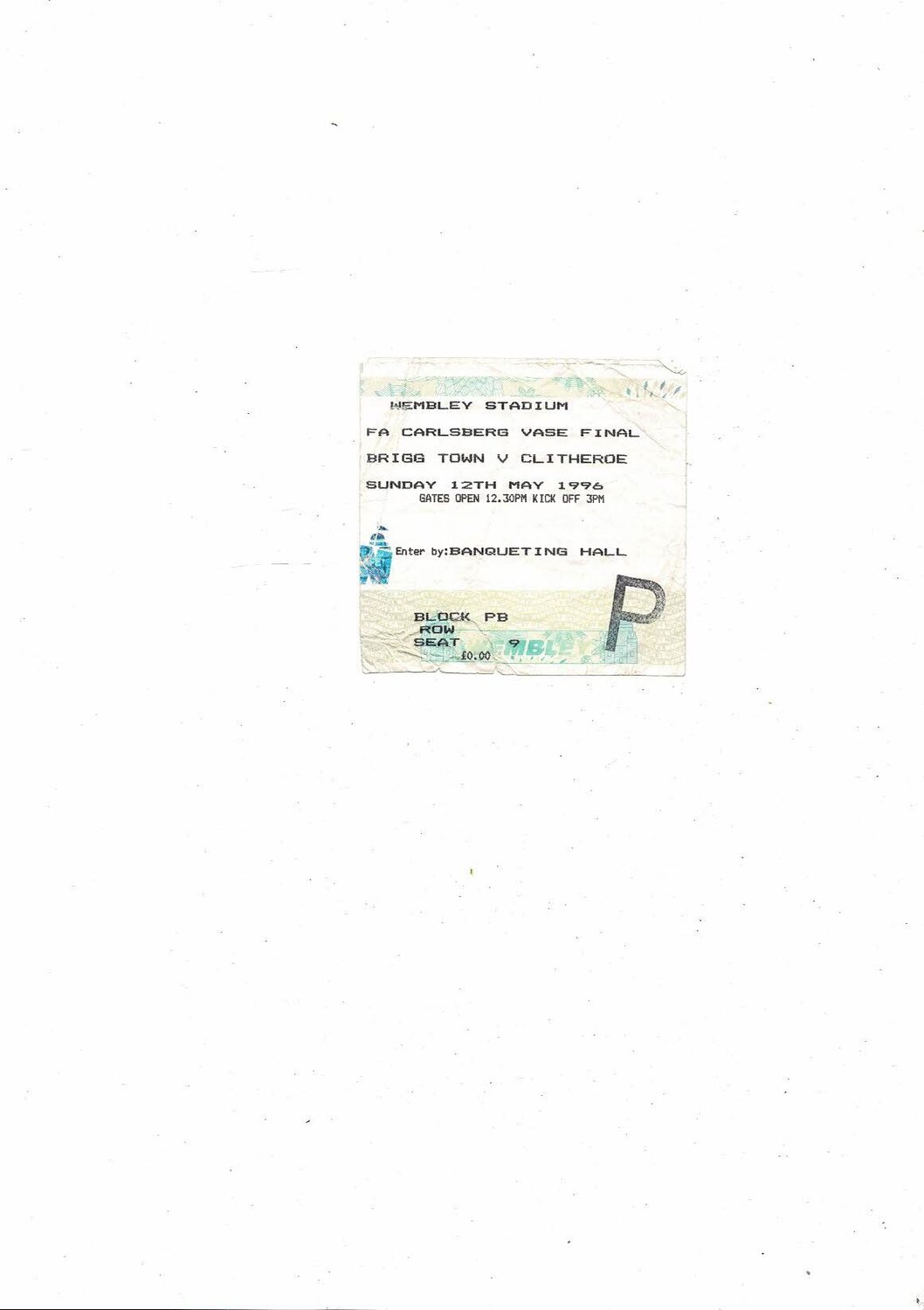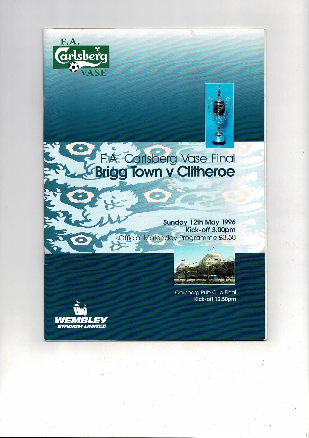 1996 Brigg Town v Clitheroe FA Vase Final Football Programme, Ticket, Team Sheet, Stat Sheet