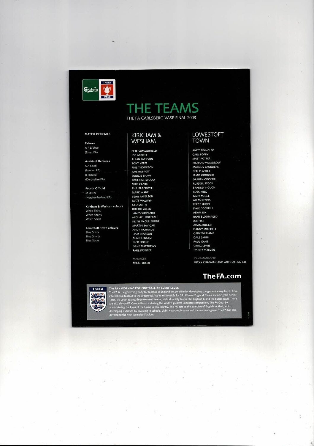 2008 Kirkham & Wesham v Lowestoft Town Vase Final Football Programme