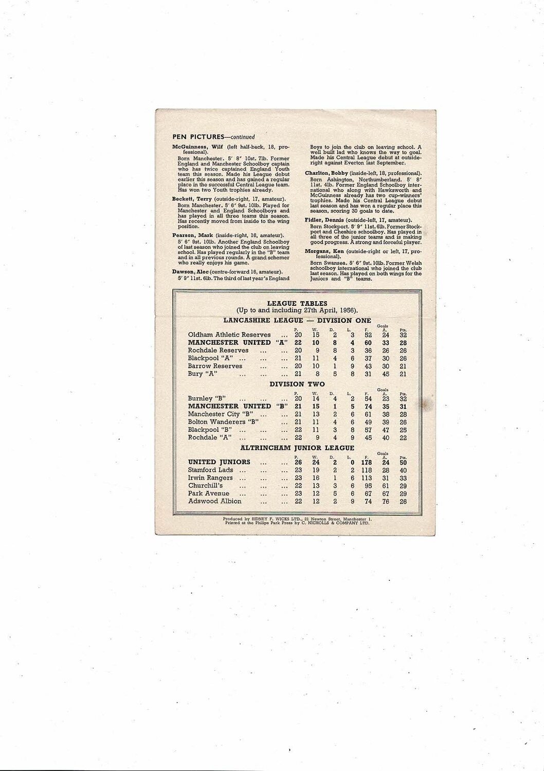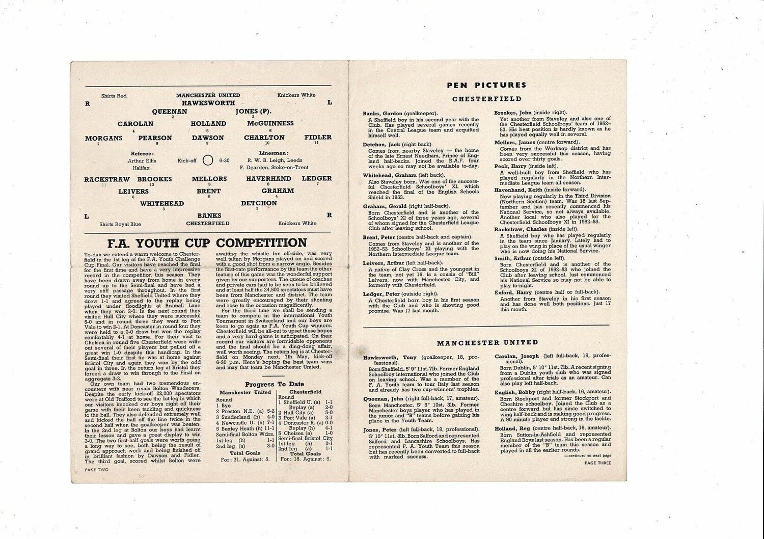 1956 Manchester United v Chesterfield FA Youth Cup Final Football Programme