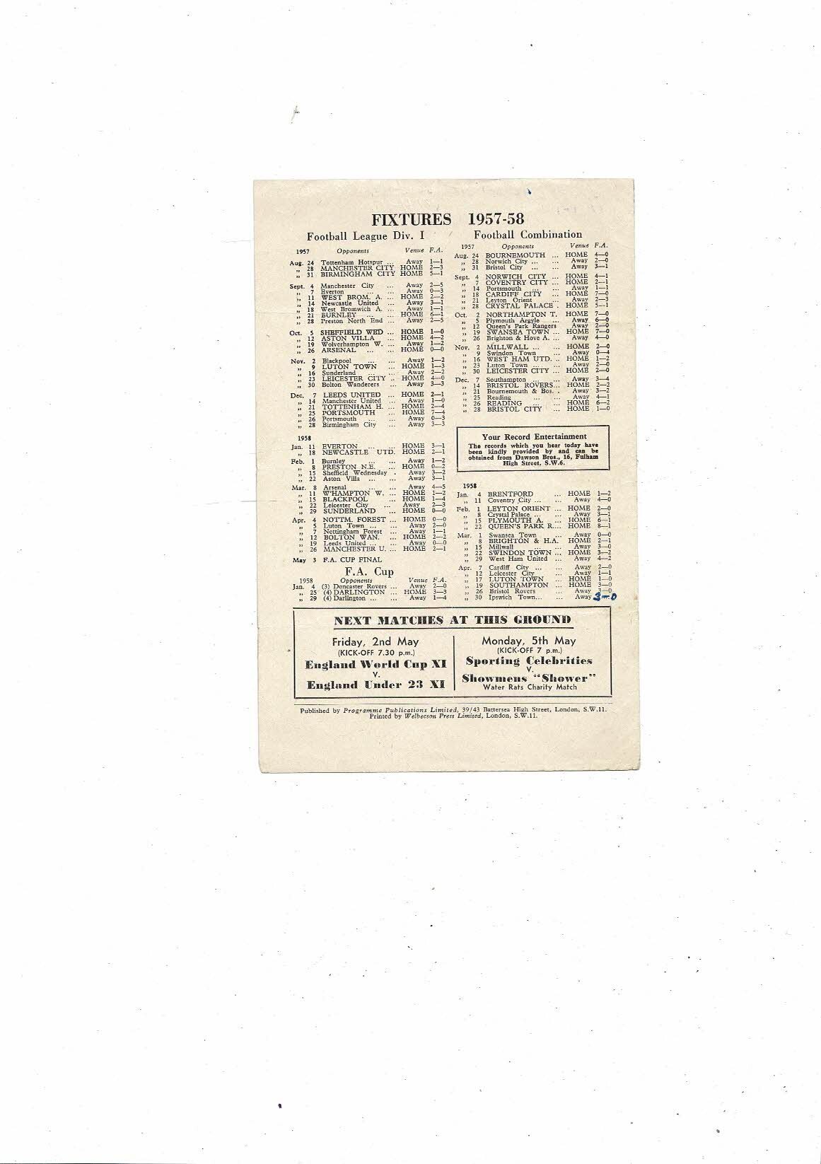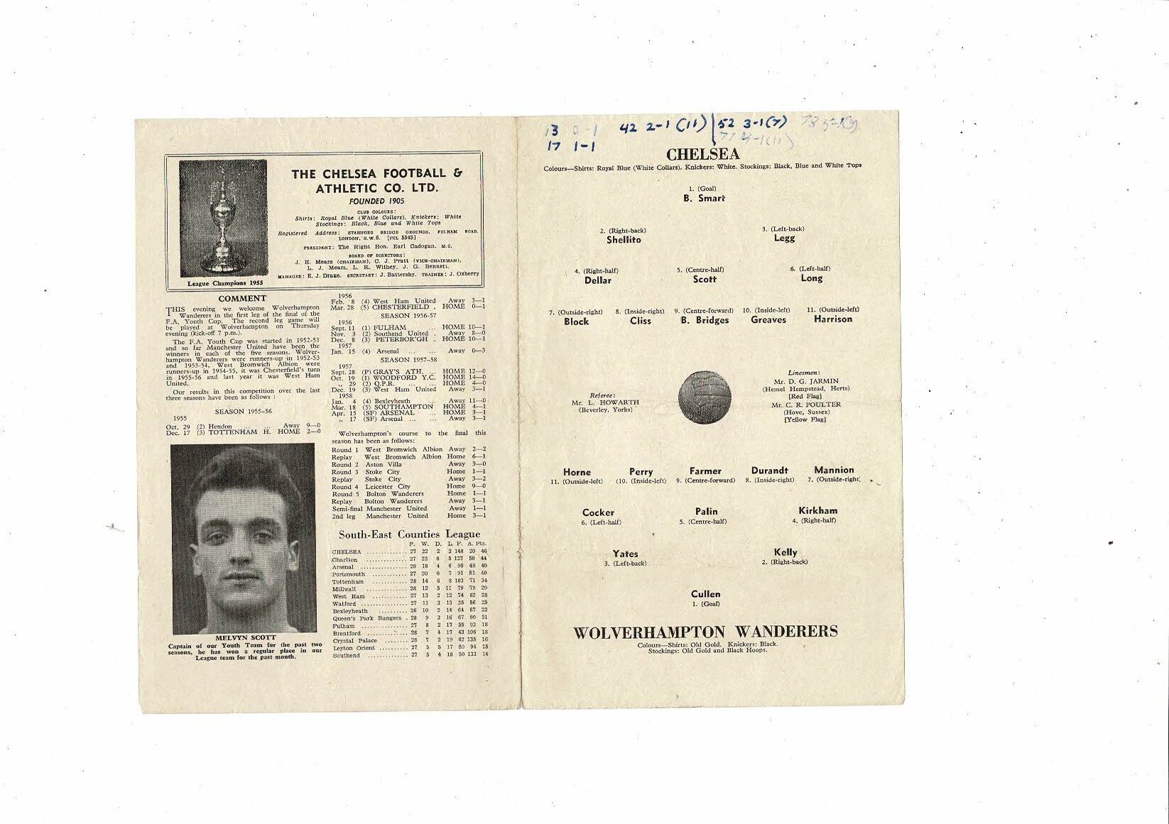 1958 Chelsea v Wolves FA Youth Cup Final Football Programme