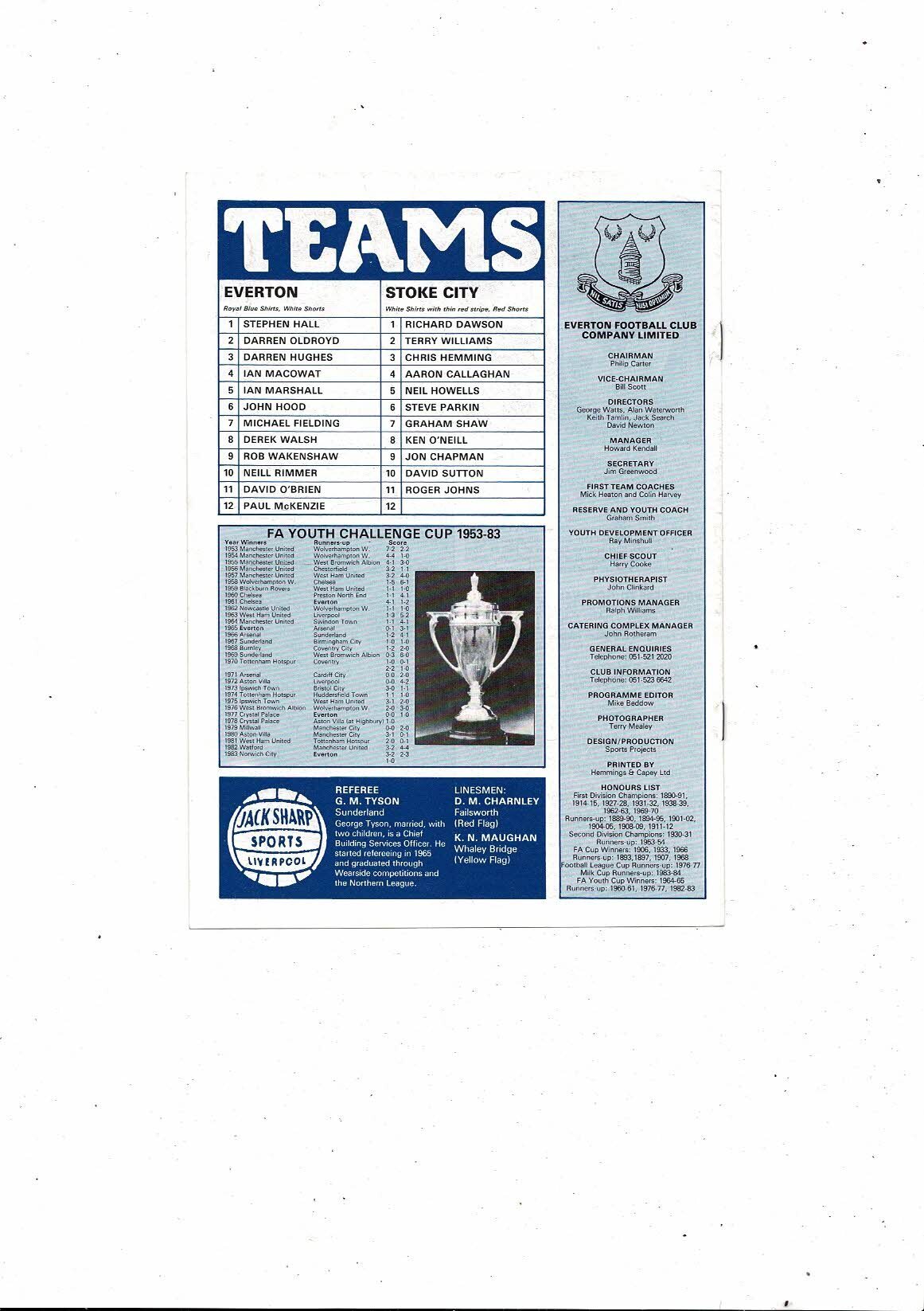 1984 Everton v Stoke City FA Youth Cup Final Football Programme