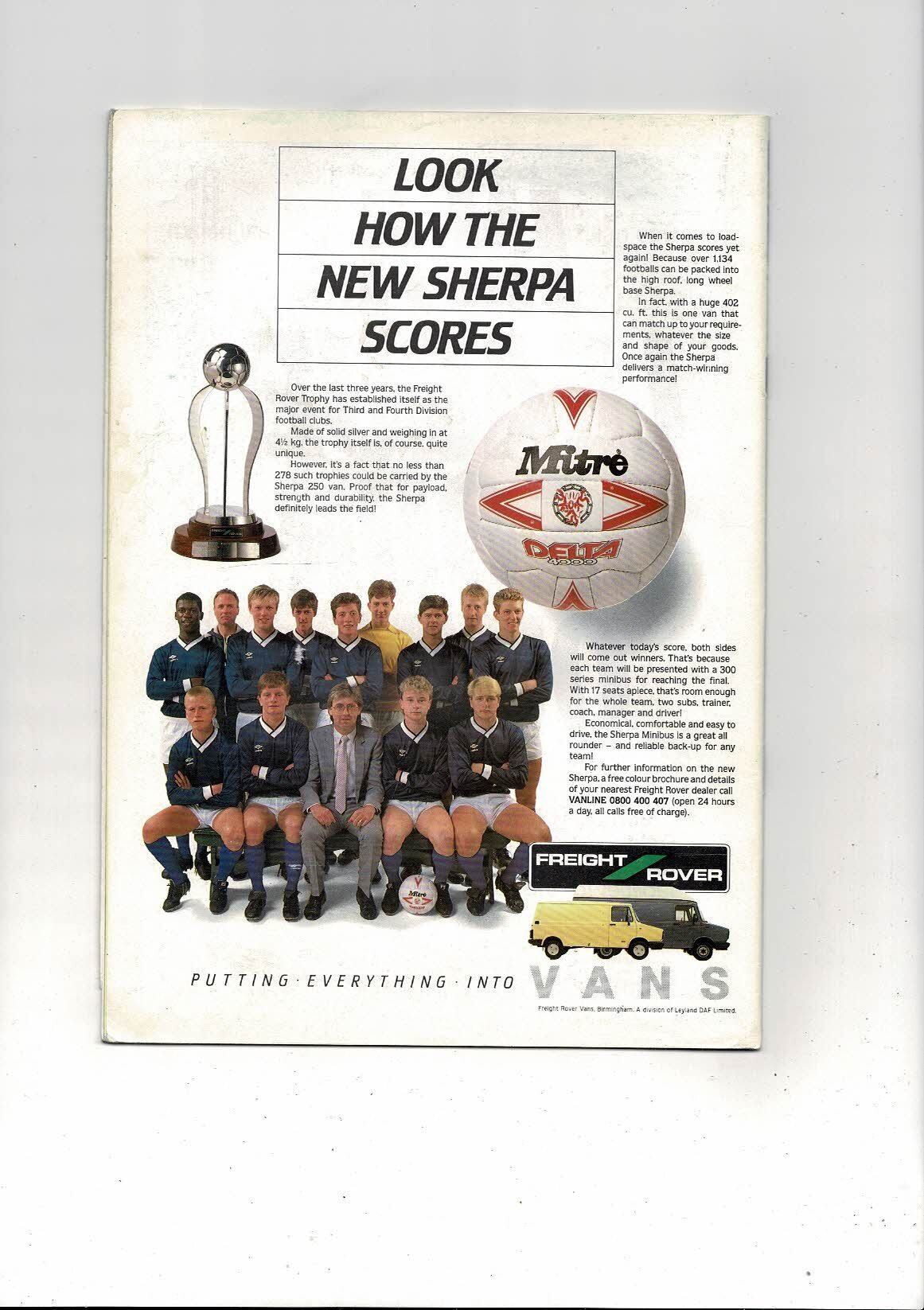 1987 Bristol City v Mansfield Town Freight Rover Trophy Final Football Programme