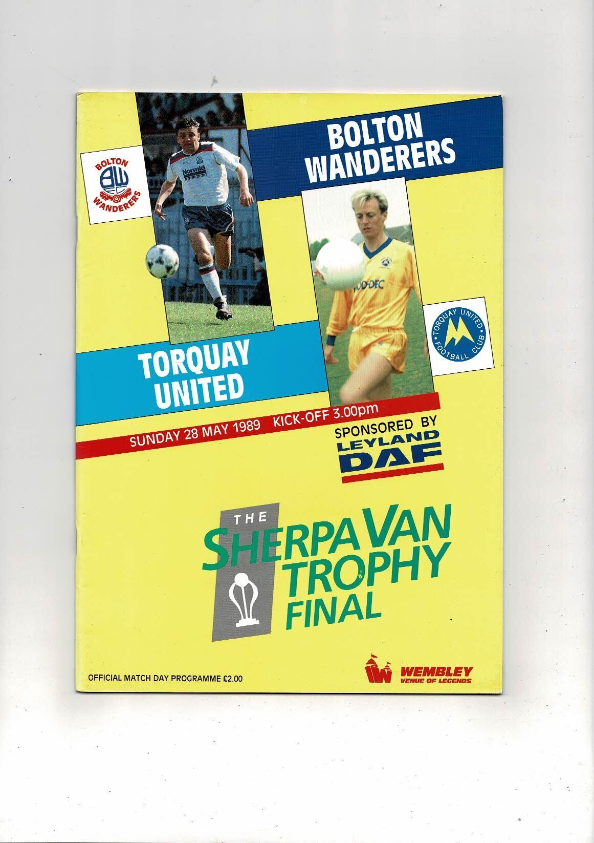 1989 Bolton Wanderers v Torquay United Sherpa Van Trophy Final Football Programme