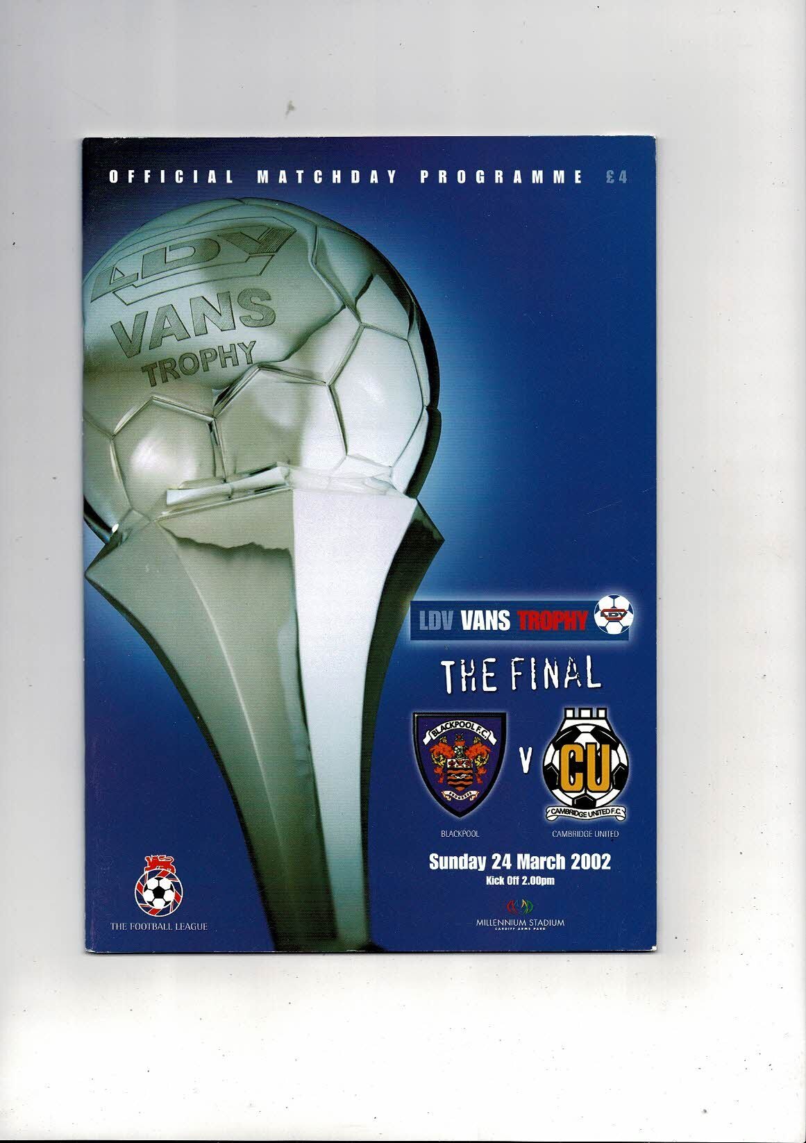 2002 Blackpool v Cambridge United LDV Vans Trophy Final Football Programme