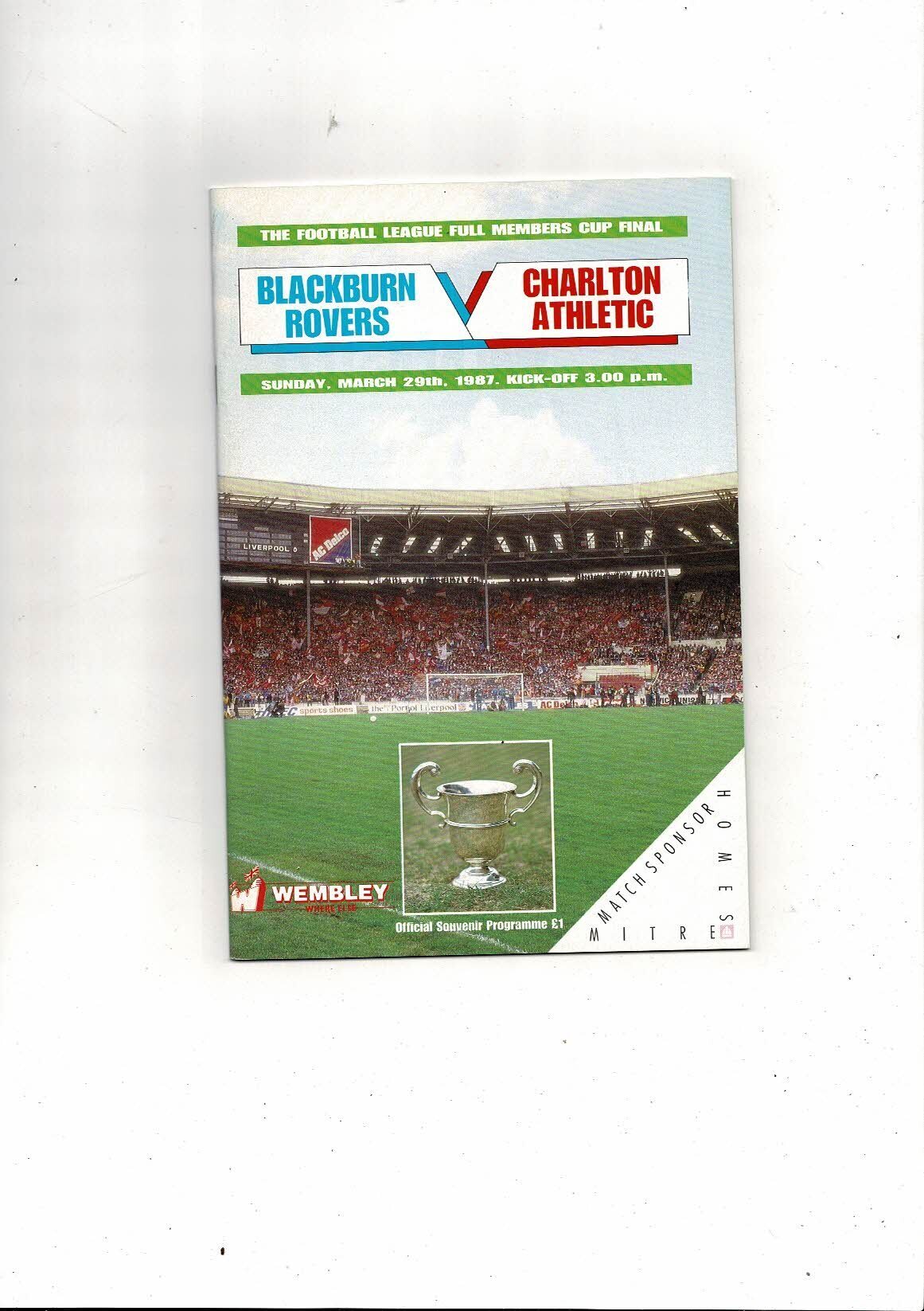 1987 Blackburn Rovers v Charlton Athletic Full Members Cup Final Football Programme