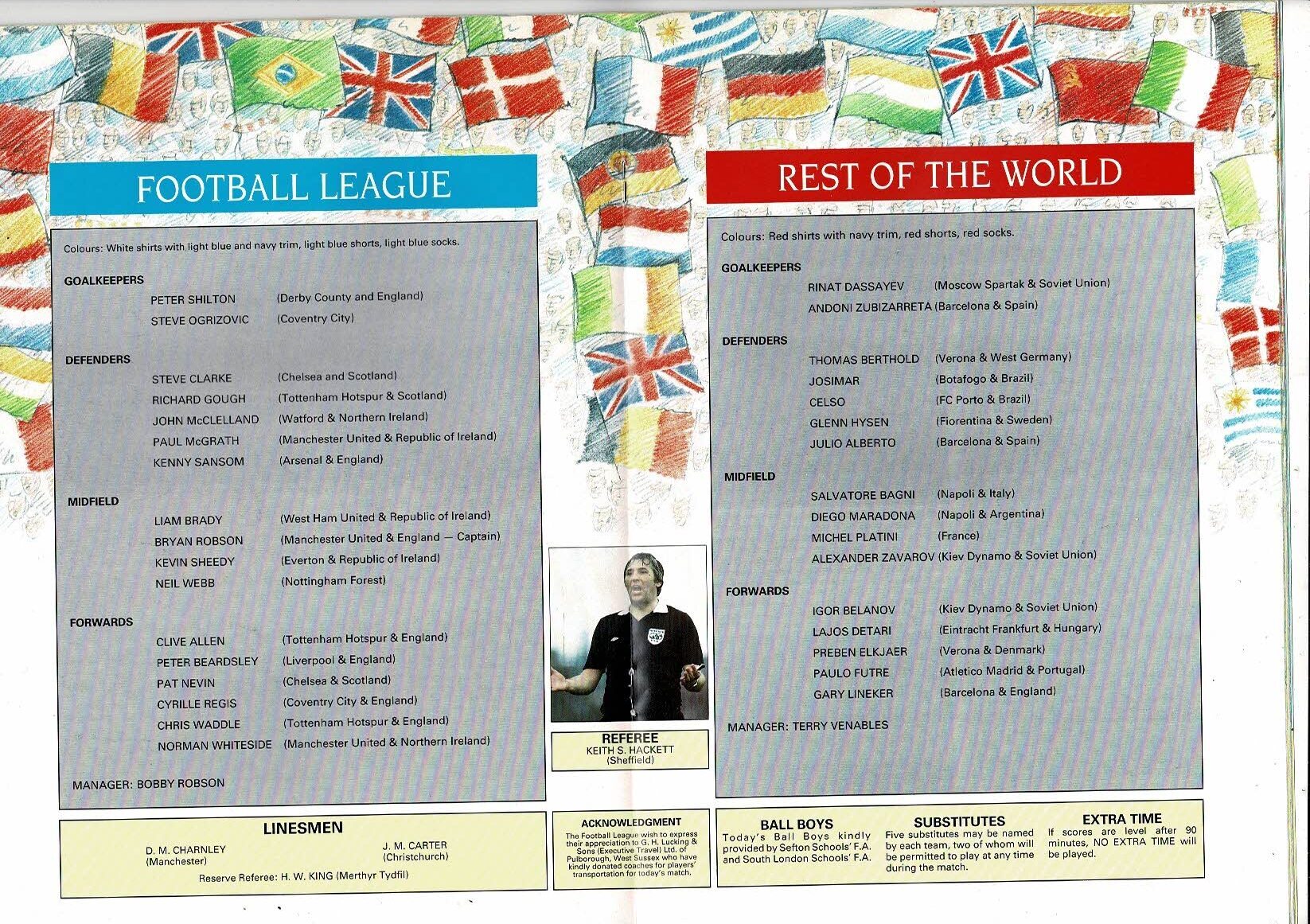 1987 Football League v Rest of the World Mercantile Credit Football Programme