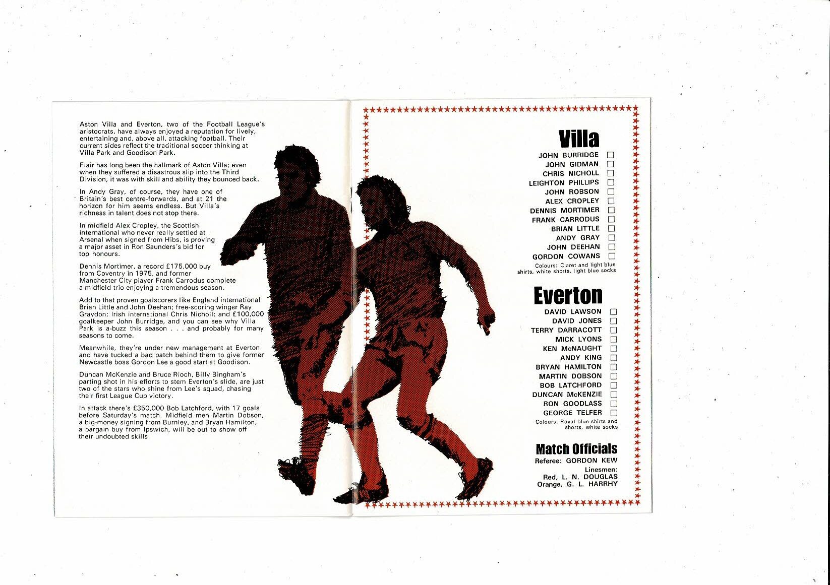 1977 Aston Villa v Everton League Cup Final Replay Football Programme