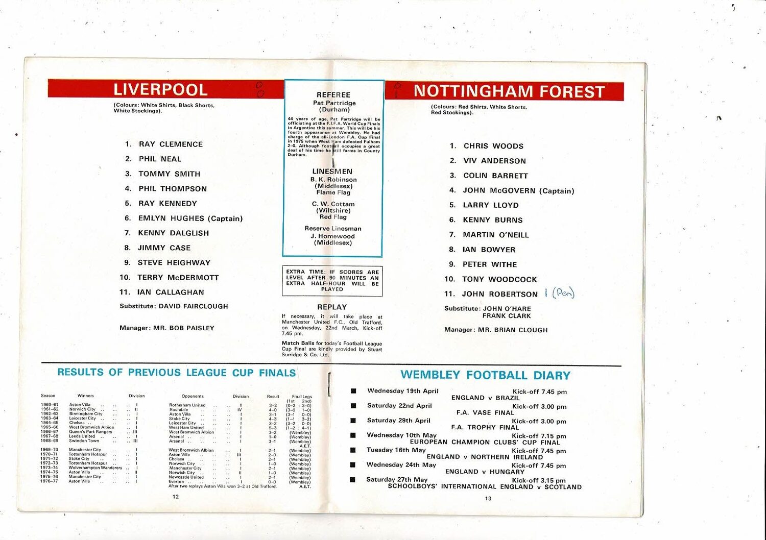 1978 Liverpool v Nottingham Forest League Cup Final Football Programme