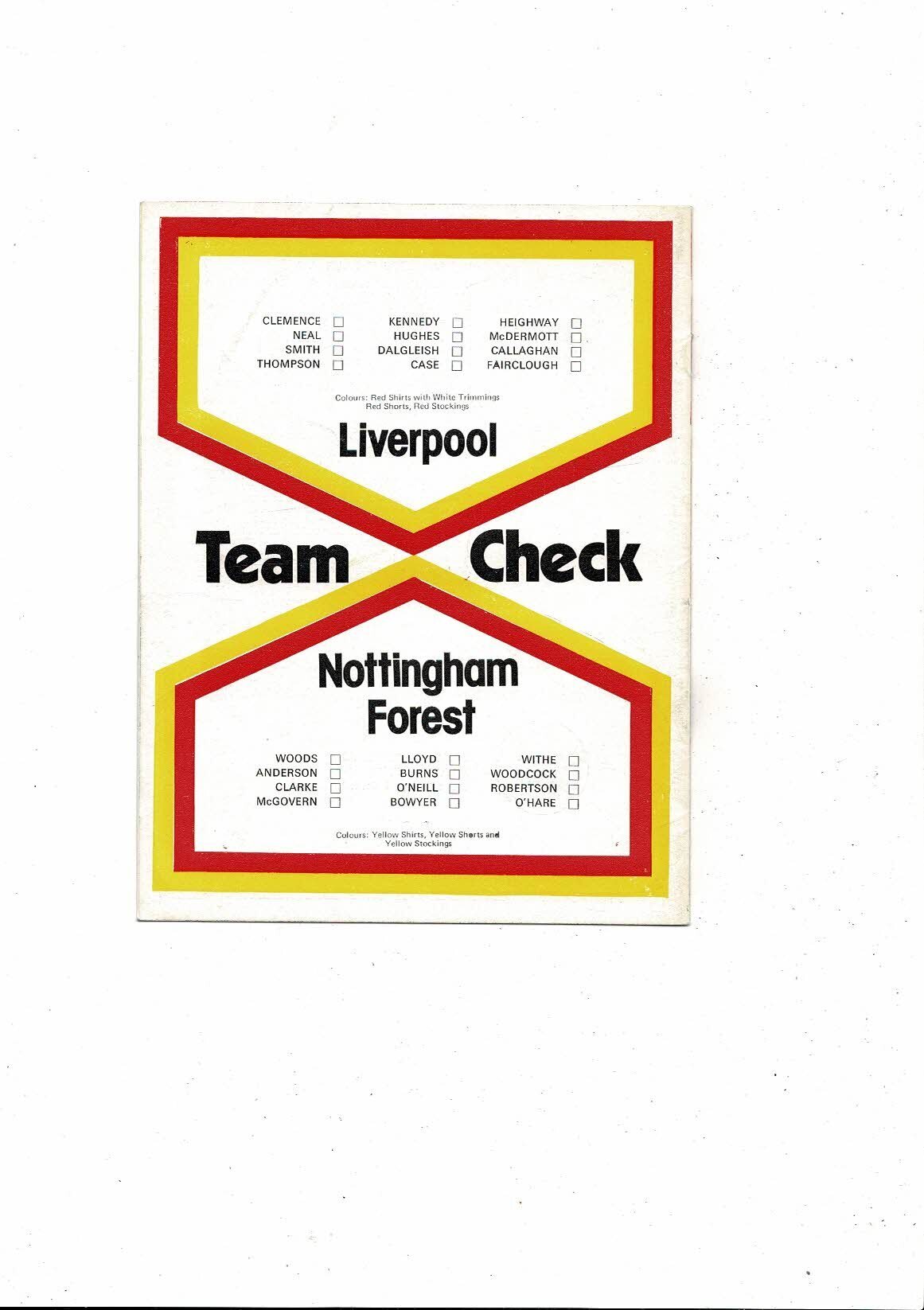 1978 Nottingham Forest v Liverpool League Cup Final Replay Football Programme