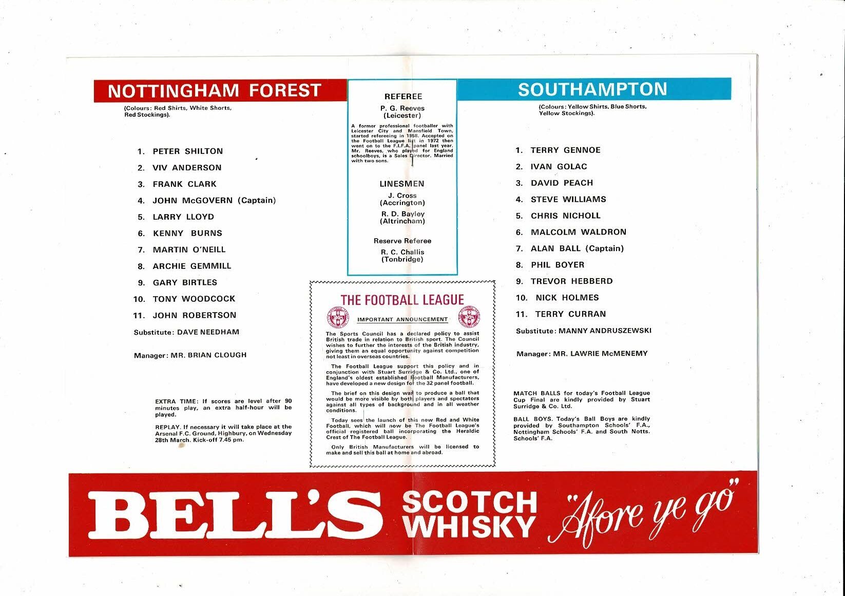 1979 Nottingham Forest v Southampton League Cup Final Football Programme