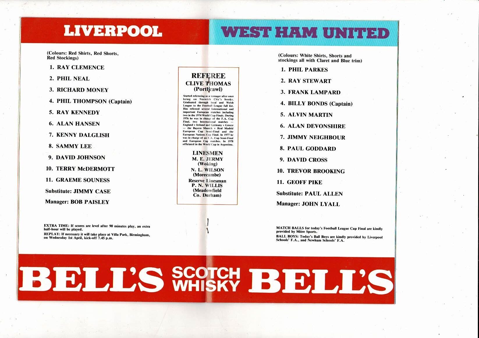 1981 Liverpool v West Ham United League Cup Final Football Programme