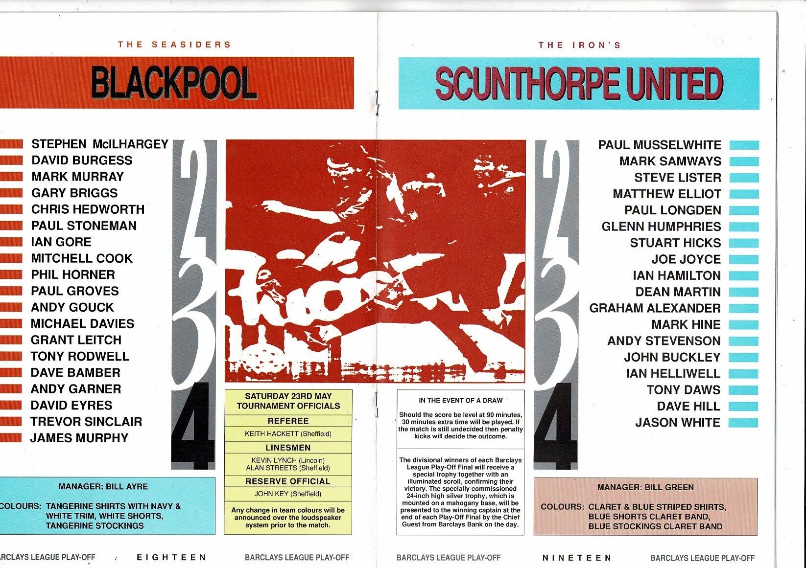 1992 Blackpool v Scunthorpe United Play Off Final Div 4 Football Programme